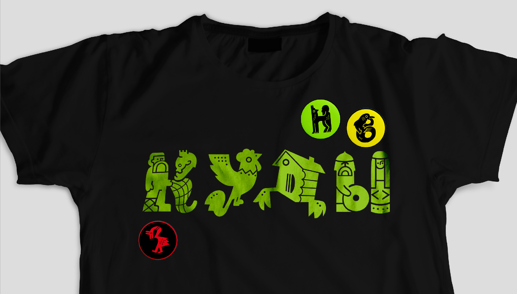 Чтобы совместить атмосферу самобытности, традиций и современности, главным стилеобразующим элементом был выбран шрифт: леттеринг-шрифт и сюжетный шрифт, которые как распределяются в соответствии с возрастной группой посетителей парка, так и комбинируются вместе на носителях для поддержания идеи повсеместного присутствия культуры вокруг зрителя.