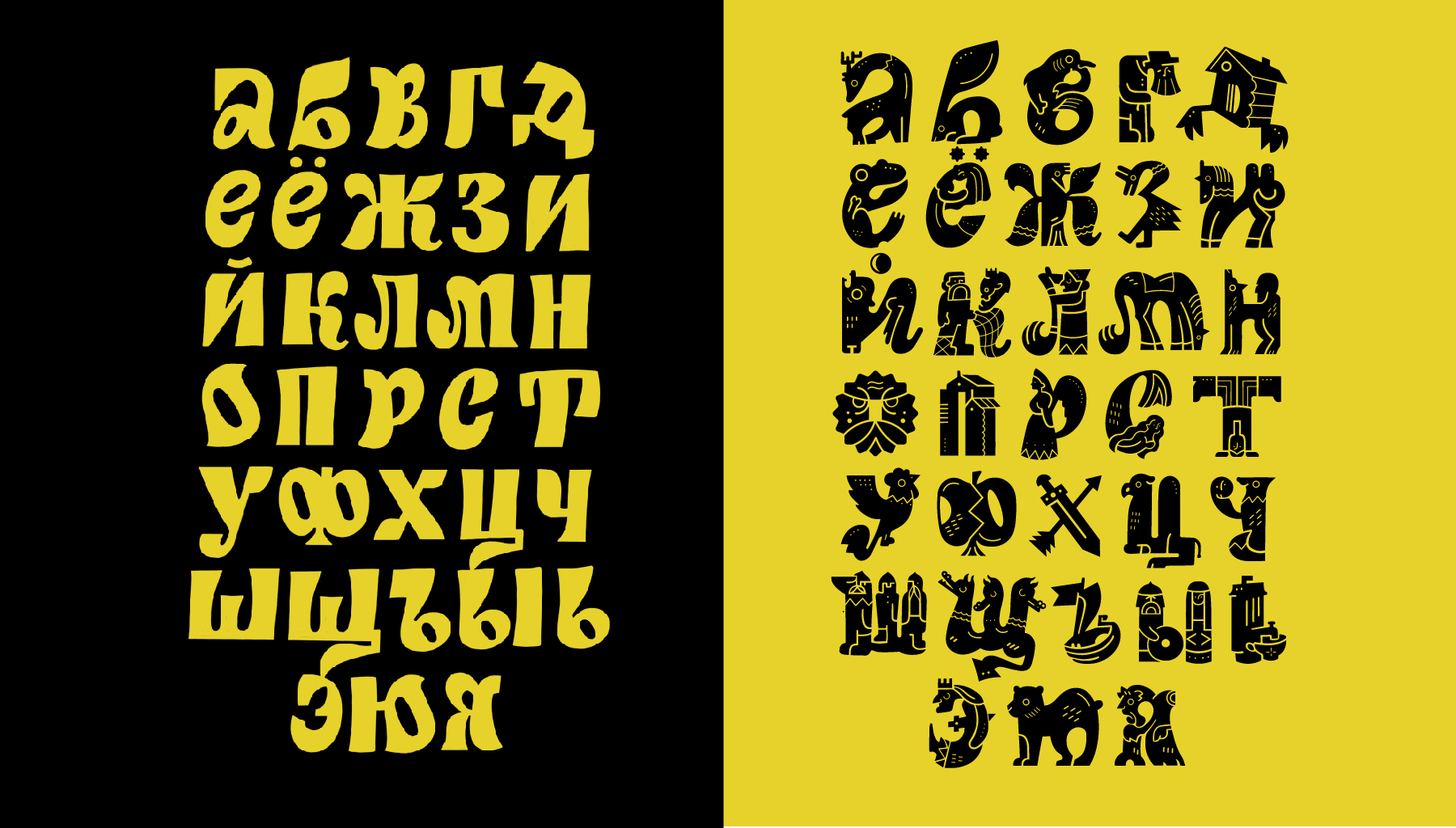 Сюжетный шрифт – это комбинация из сюжетов определенной тематики и формы букв. Такие гарнитуры универсальны в использовании, так как каждая буквица представляет собой отдельную иллюстрацию с персонажем/предметом и может даже не восприниматься как буква, а так же быть полноценным акцидентным шрифтом.