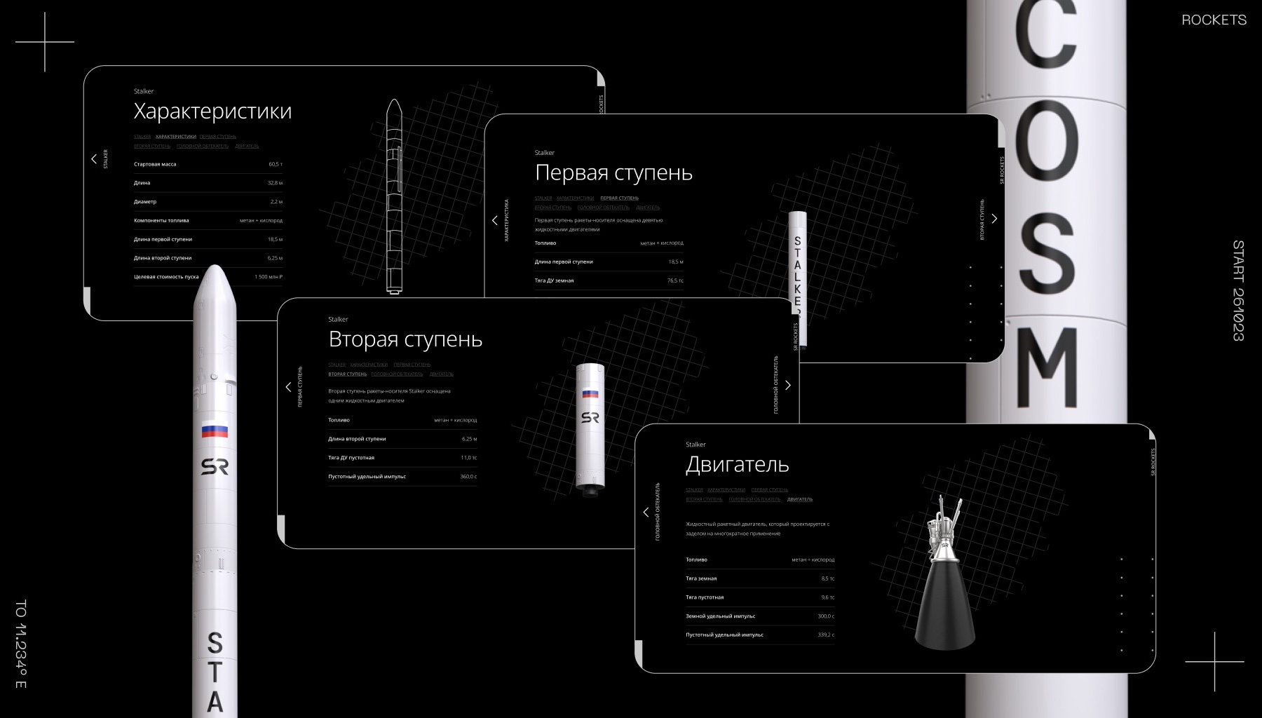 В дизайне сайта мы сделали акцент на демонстрации экосистемы бизнеса, погружение в возможности каждого из продуктов, а также на 3D-моделях космических ракет и аппаратов. Использовали сдержанную, но акцентную анимацию.