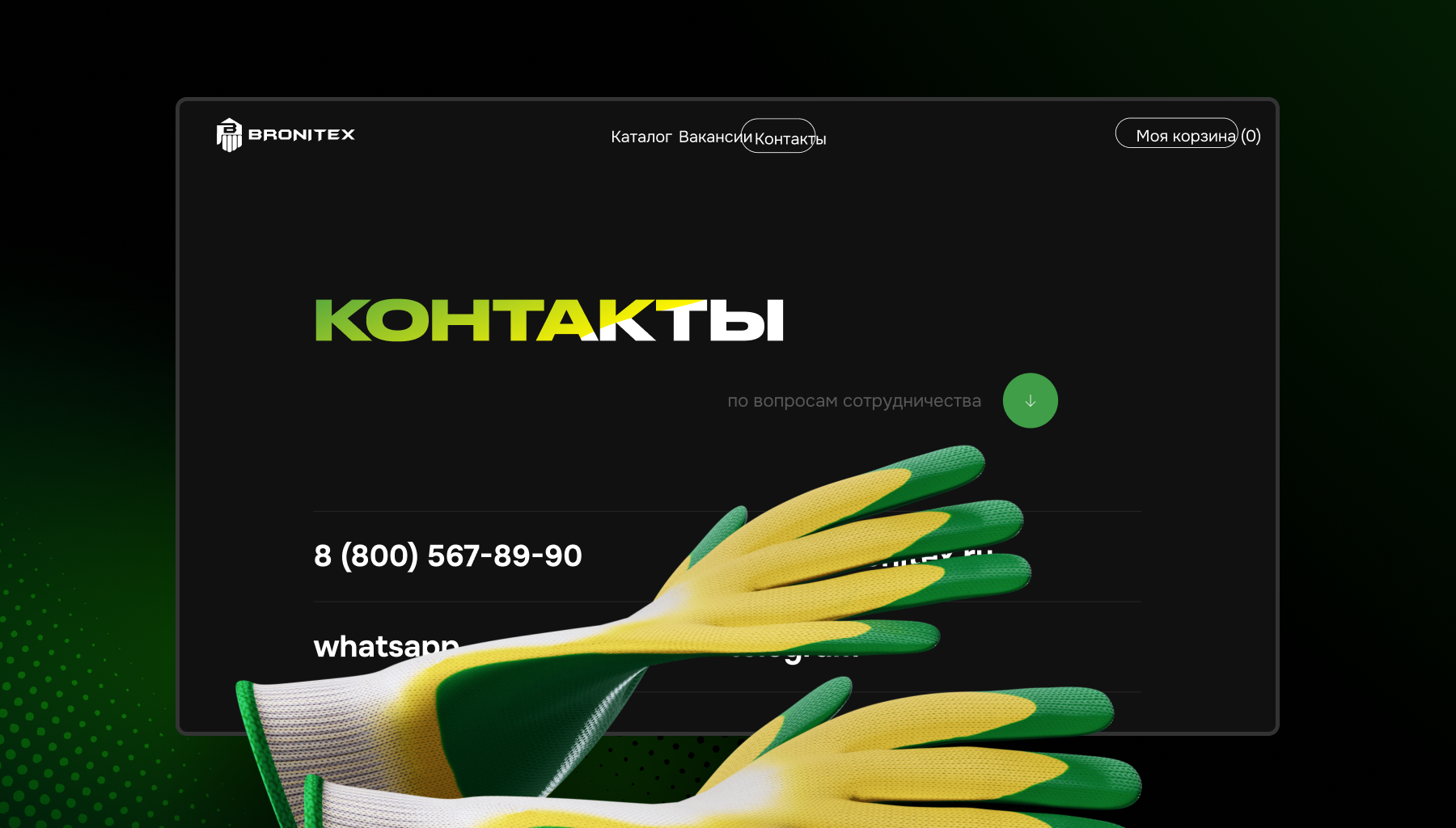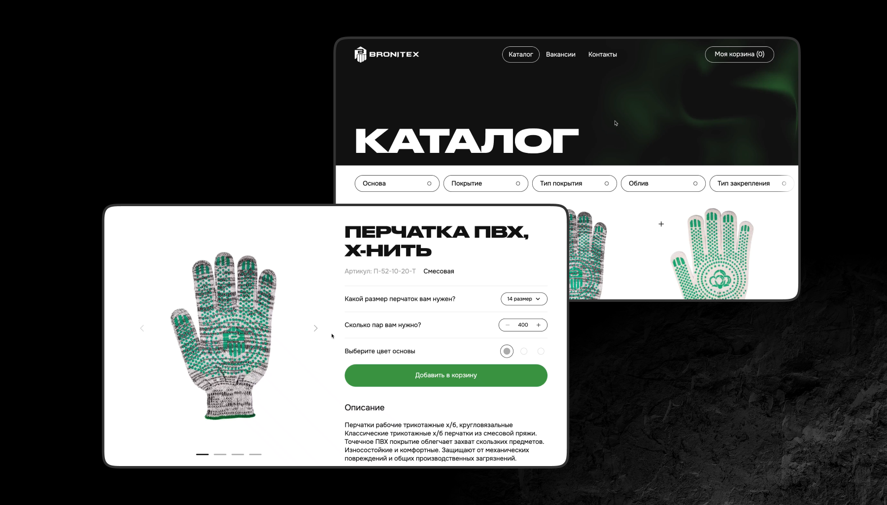 Сайт для производителя рабочих перчаток Bronitex