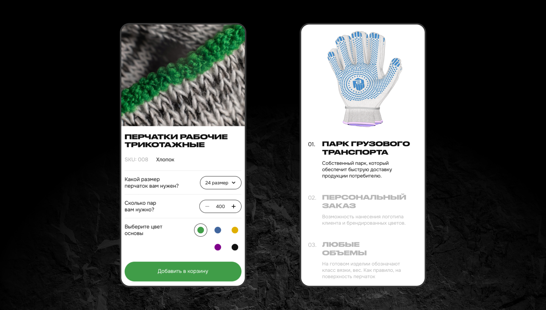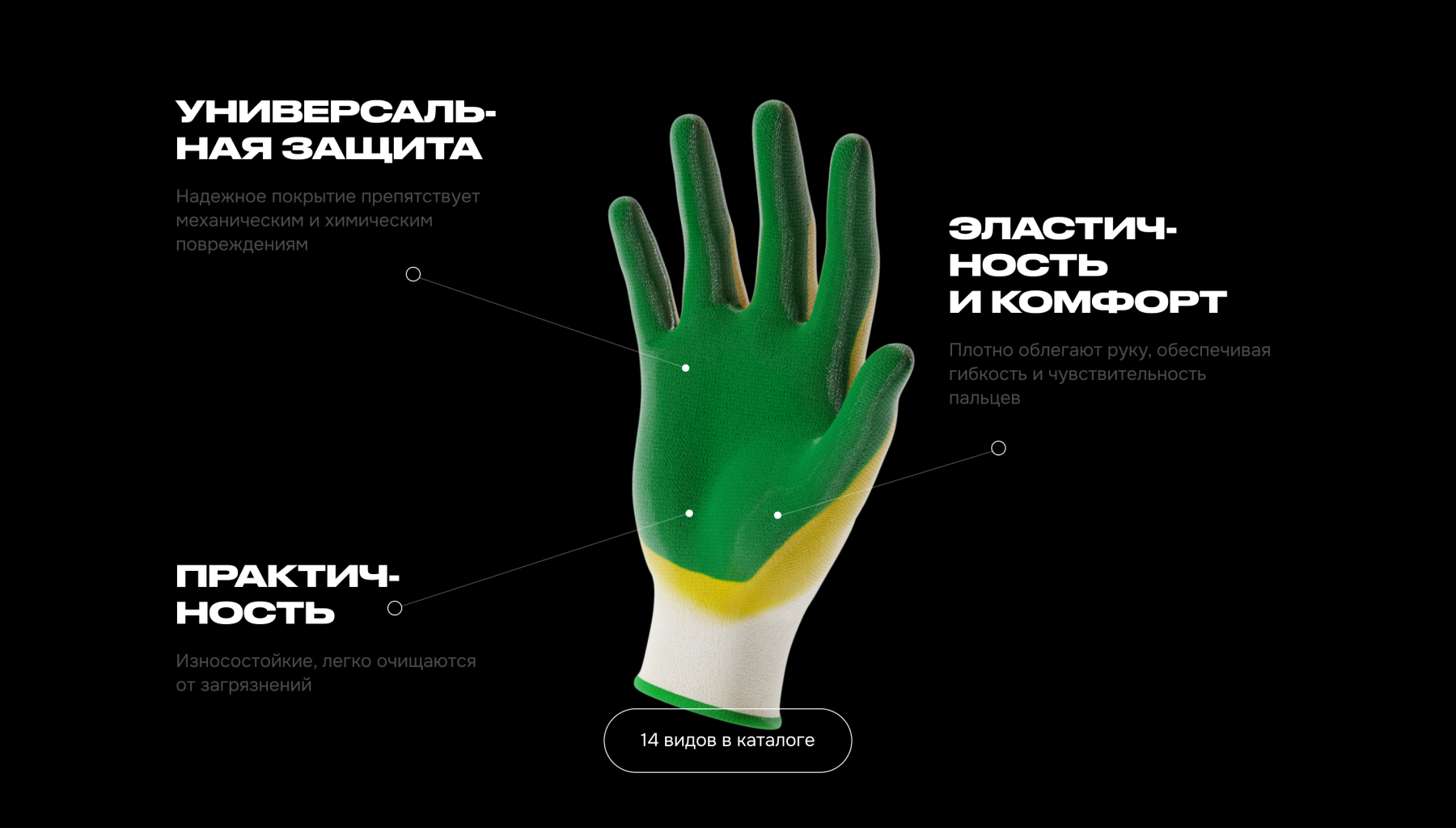 Нужно было за два месяца разработать сайт, который представит обычные рабочие перчатки так, как будто это смартфон Apple. С каталогом и фильтрами, анимациями, а также с удобной административной панелью: для управления вакансиями, формами обратной связи с заявками на покупку и так далее.