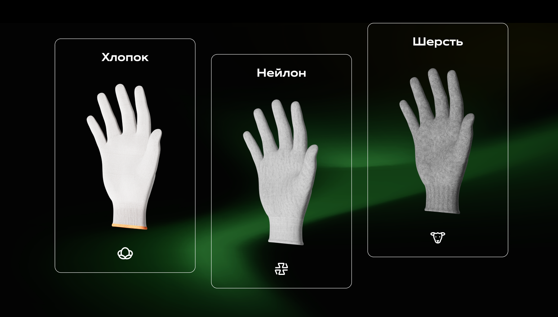 С самого начала показали товар «лицом», подсветили огромные объёмы продукции на складе. Показали преимущества каждой модели, различные типы облития, анимировали процесс «упаковки» перчаток одна к одной.