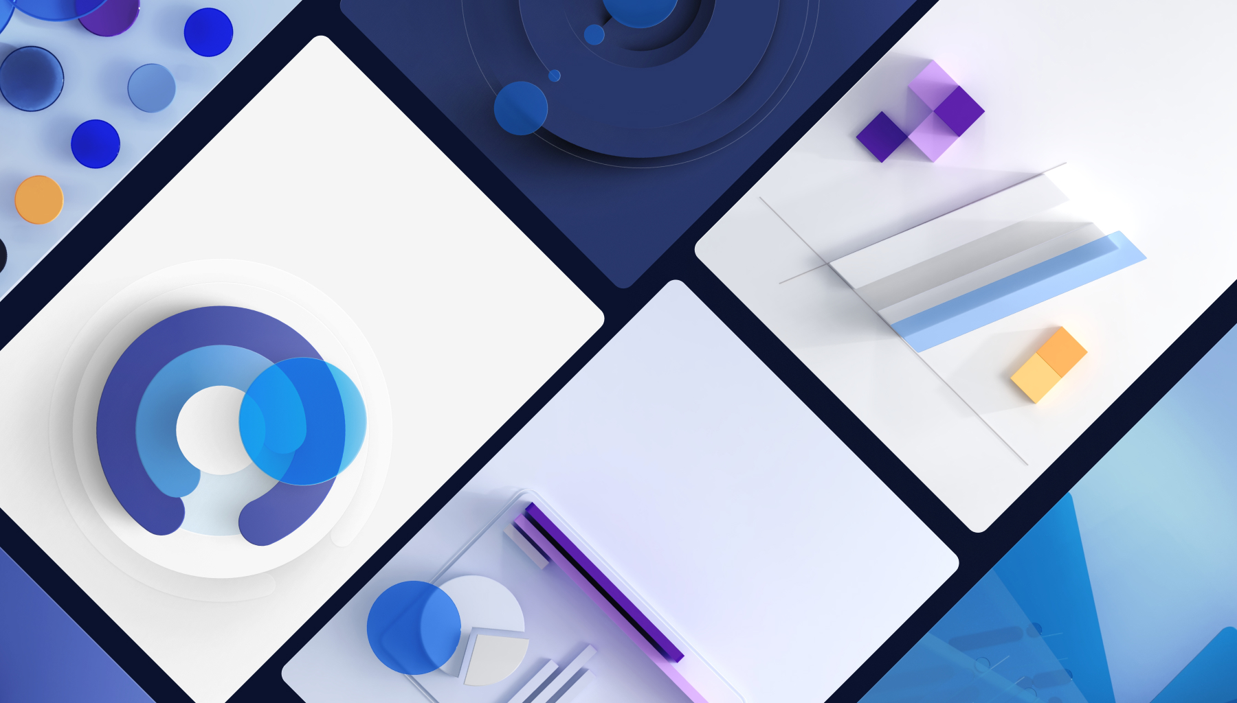 Большой акцент в дизайне сделан на работу с иллюстрациями - объемные графические формы отсылают к работе со статистикой: схемы, диаграммы, стандартные узнаваемые цвета. Это отражает суть работы продуктов экосистемы — анализ и обработка данных. А динамическая айдентика показывает развитие и адаптивный характер бренда.