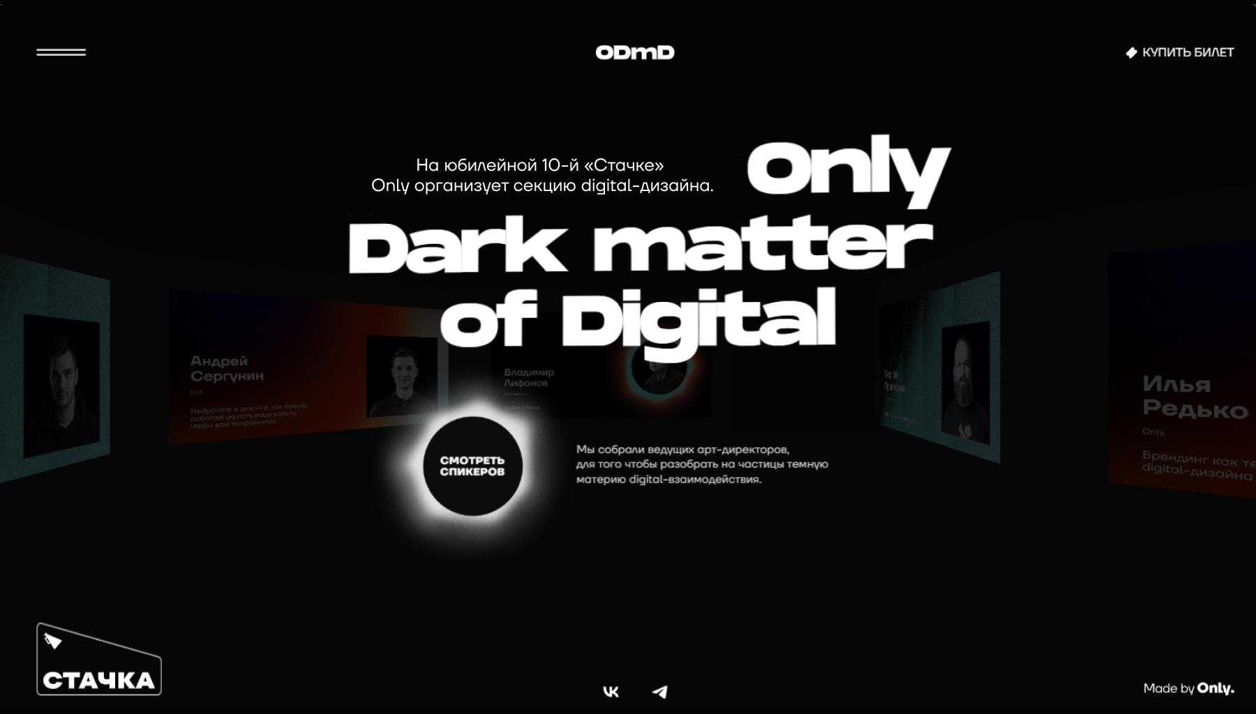 15-16 сентября в Ульновске прошла IT-конференция Стачка, которая собрала более 3000 участников. Мы курировали секцию digital-дизайна Only Dark matter of Digital, для которой разработали концептуальную идею и промо-сайт.