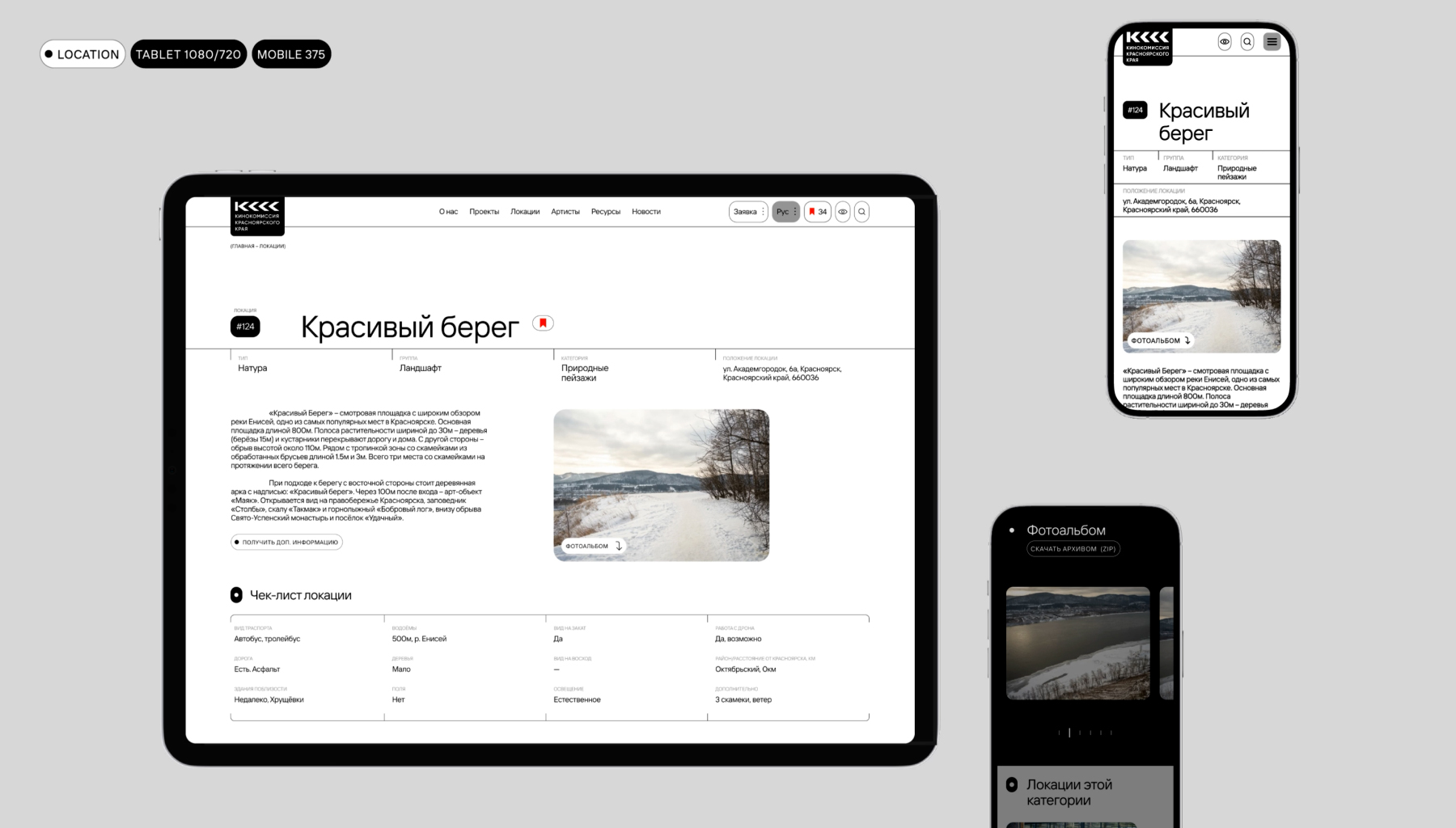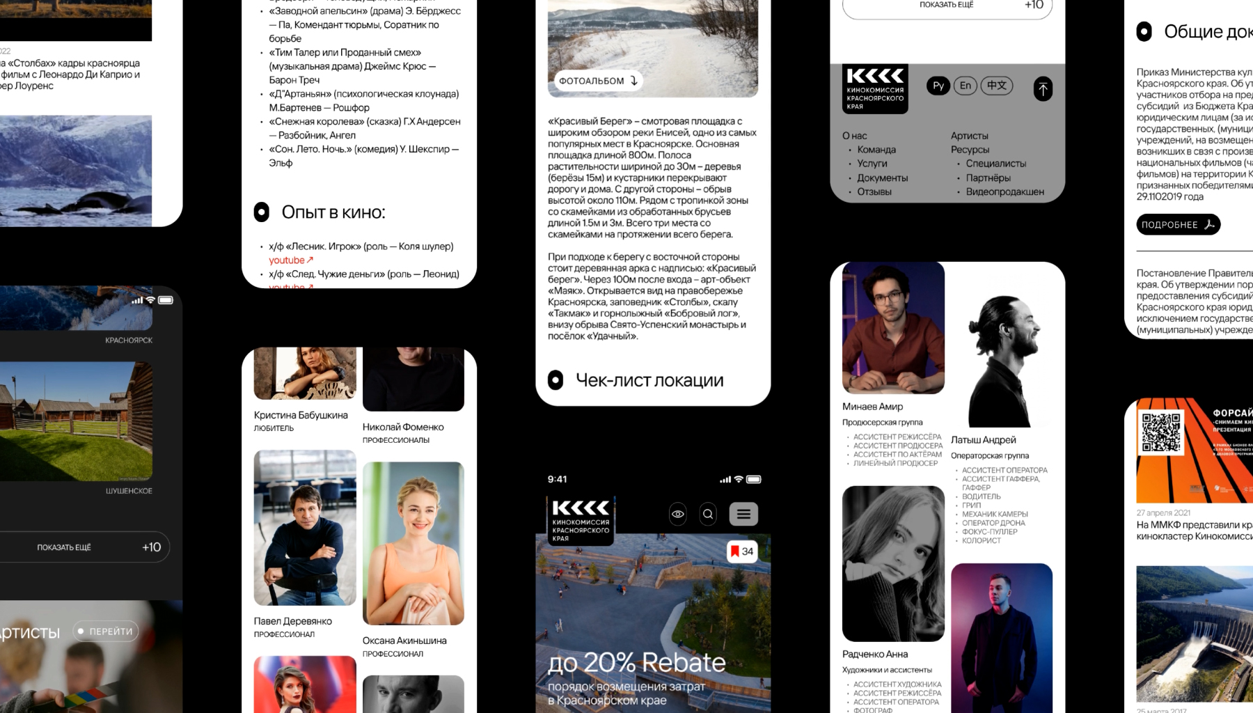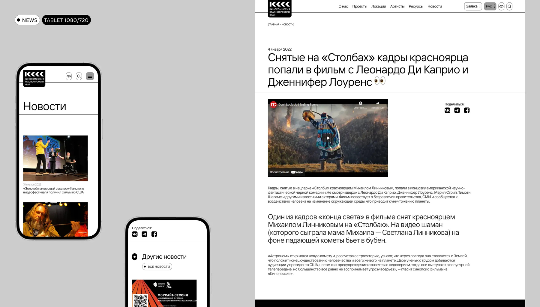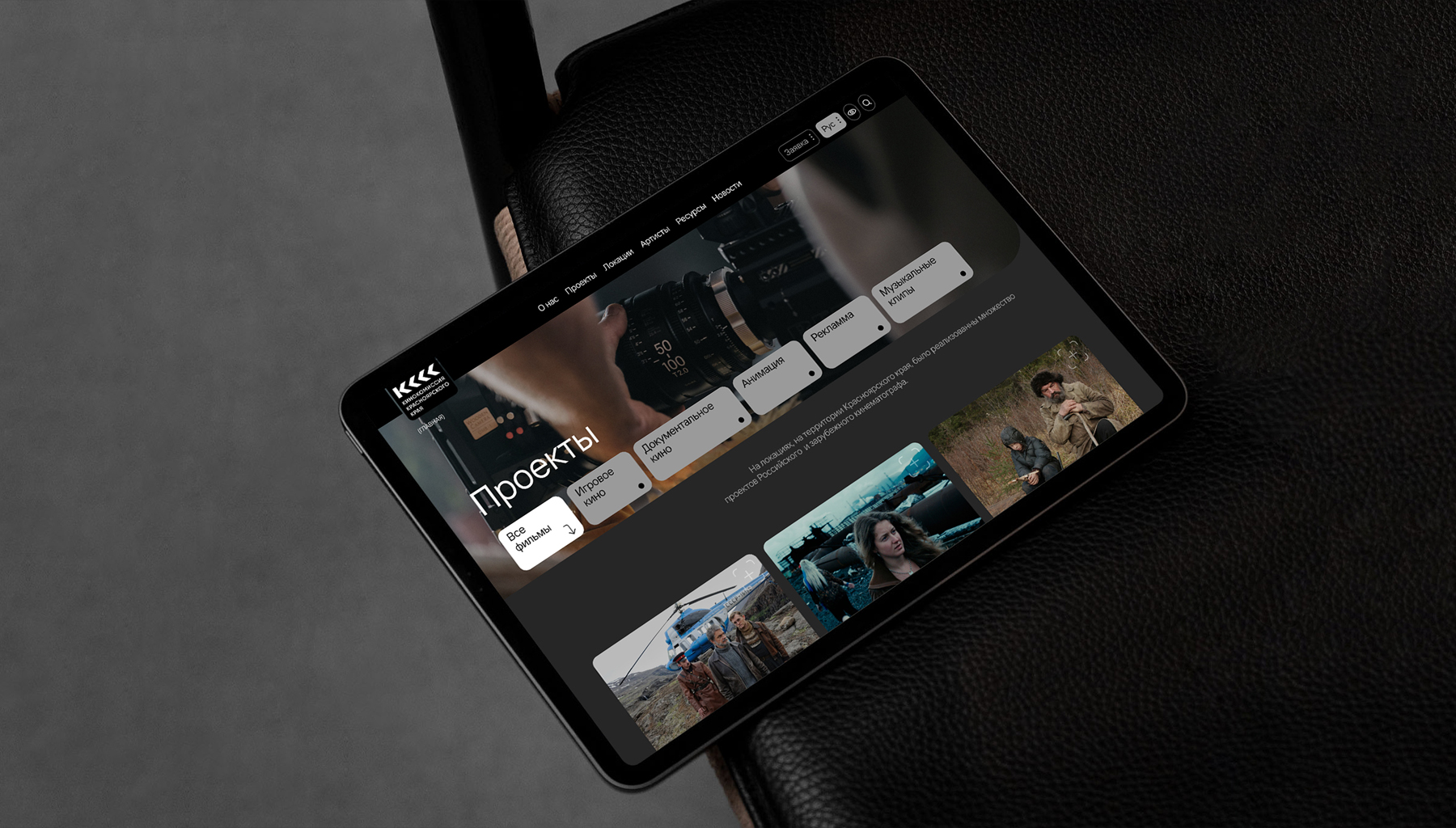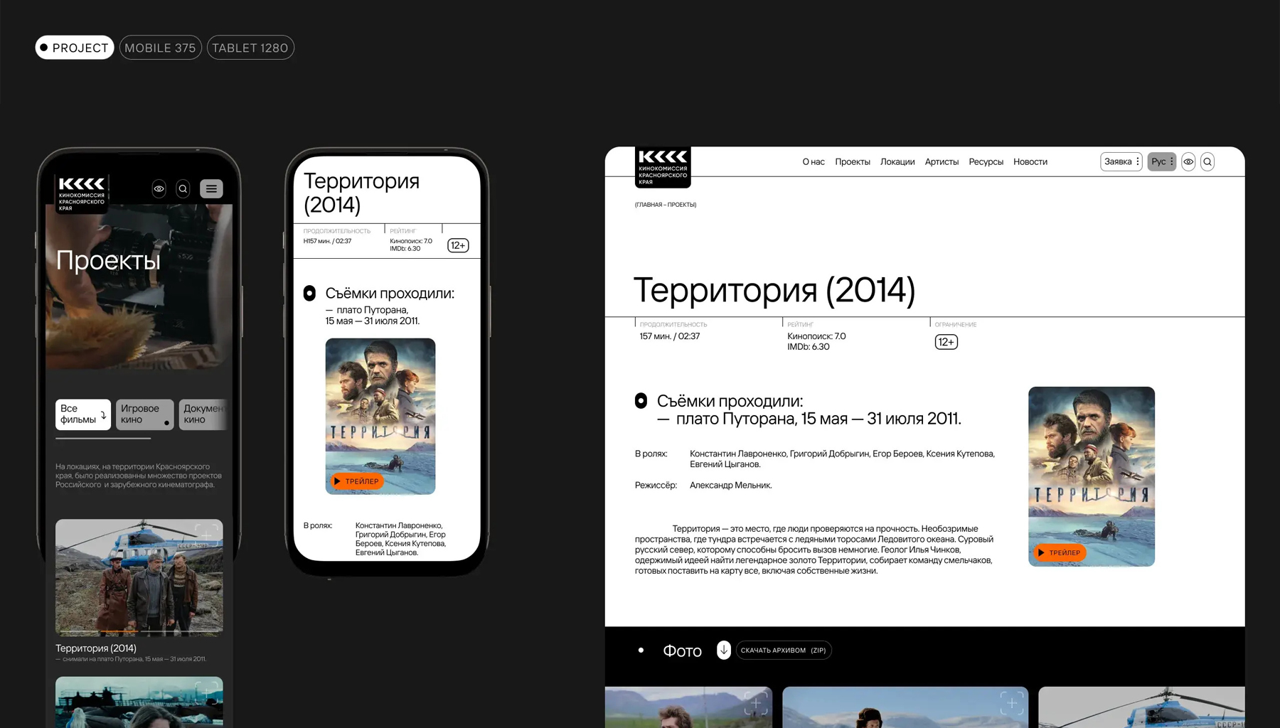 Мы разработали дизайн сайта, на котором собраны все ресурсы, необходимые для организации съемок: локации с подробным описанием, анкеты артистов, услуги по аренде оборудования и т.д. Так специалисты со всей России могут вовлекаться в производство кинопроектов на территории края.