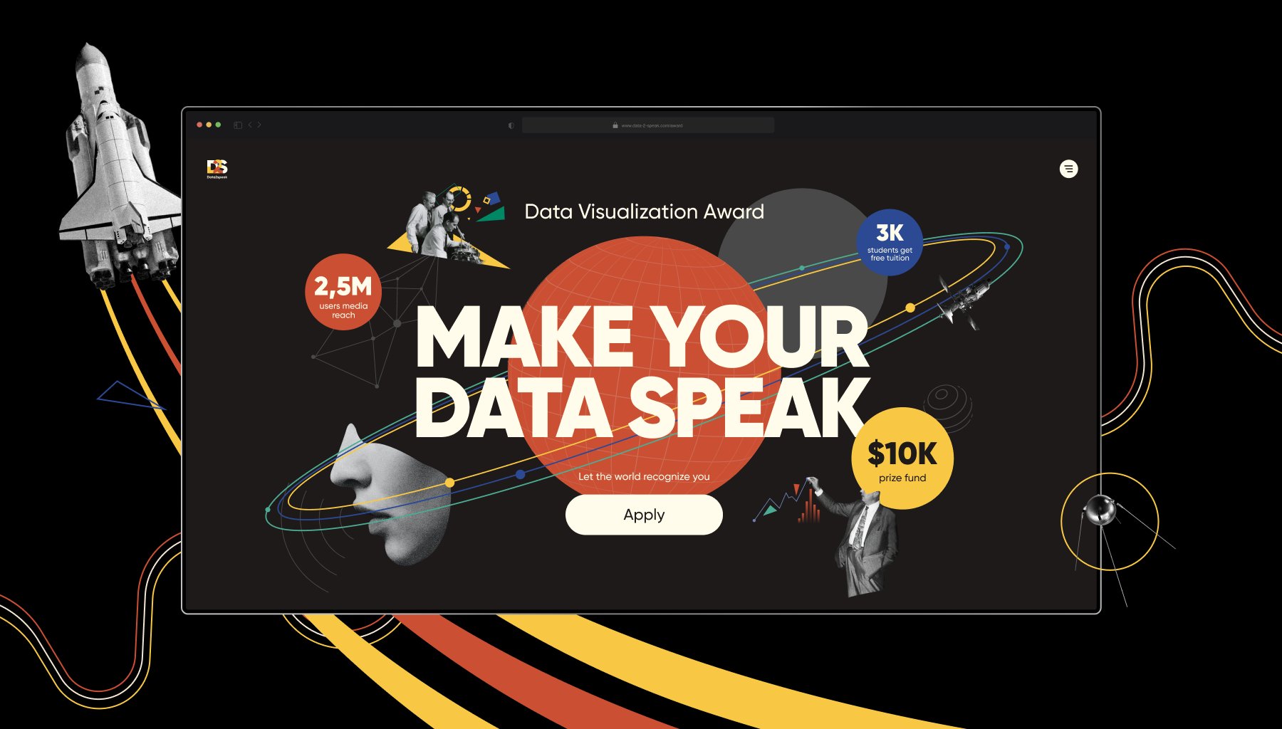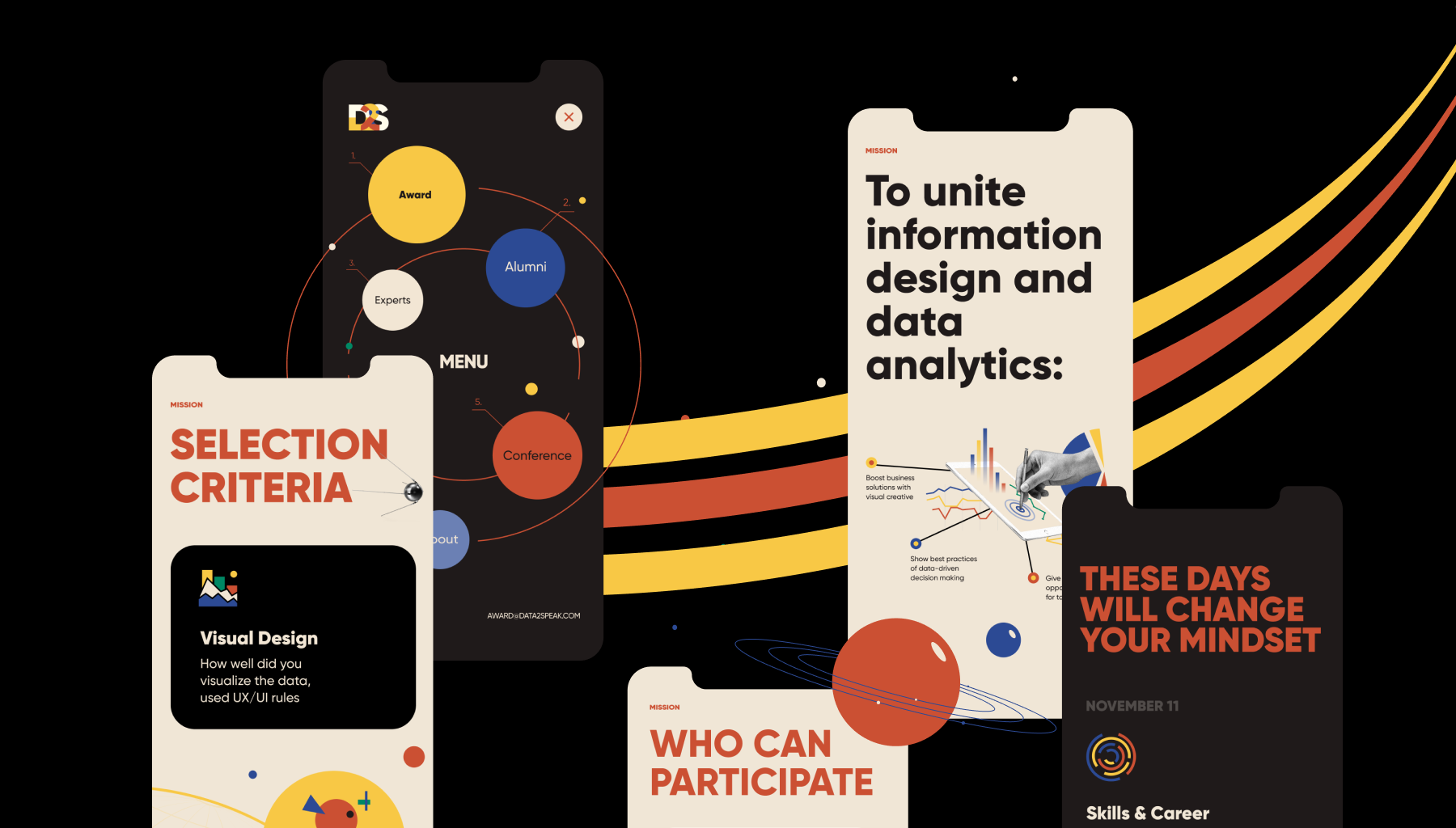 Перед нами стояла задача разработки диджитал-брендинга и сайта для фестиваля визуализации аналитических данных «Data2speak».