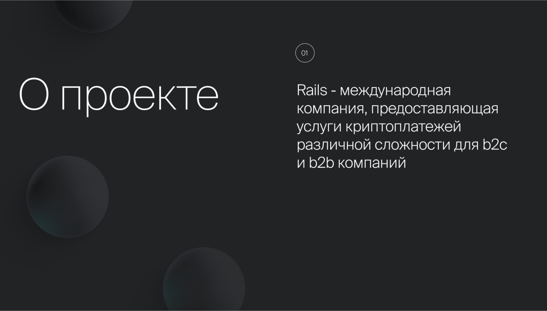 Rails — международная компания, предоставляющая услуги платежей различной сложности для b2c и b2b компаний. Для проекта были разработаны брендинг и UX/UI дизайн сайта и интерфейса продукта.