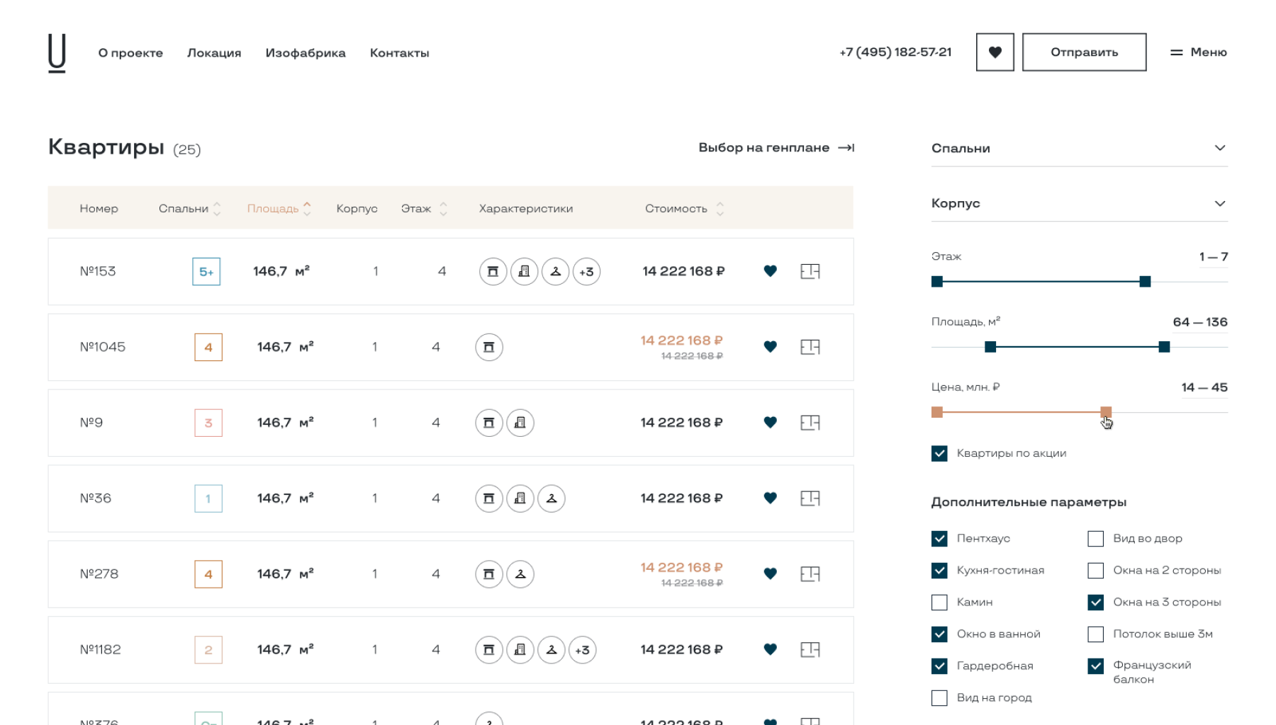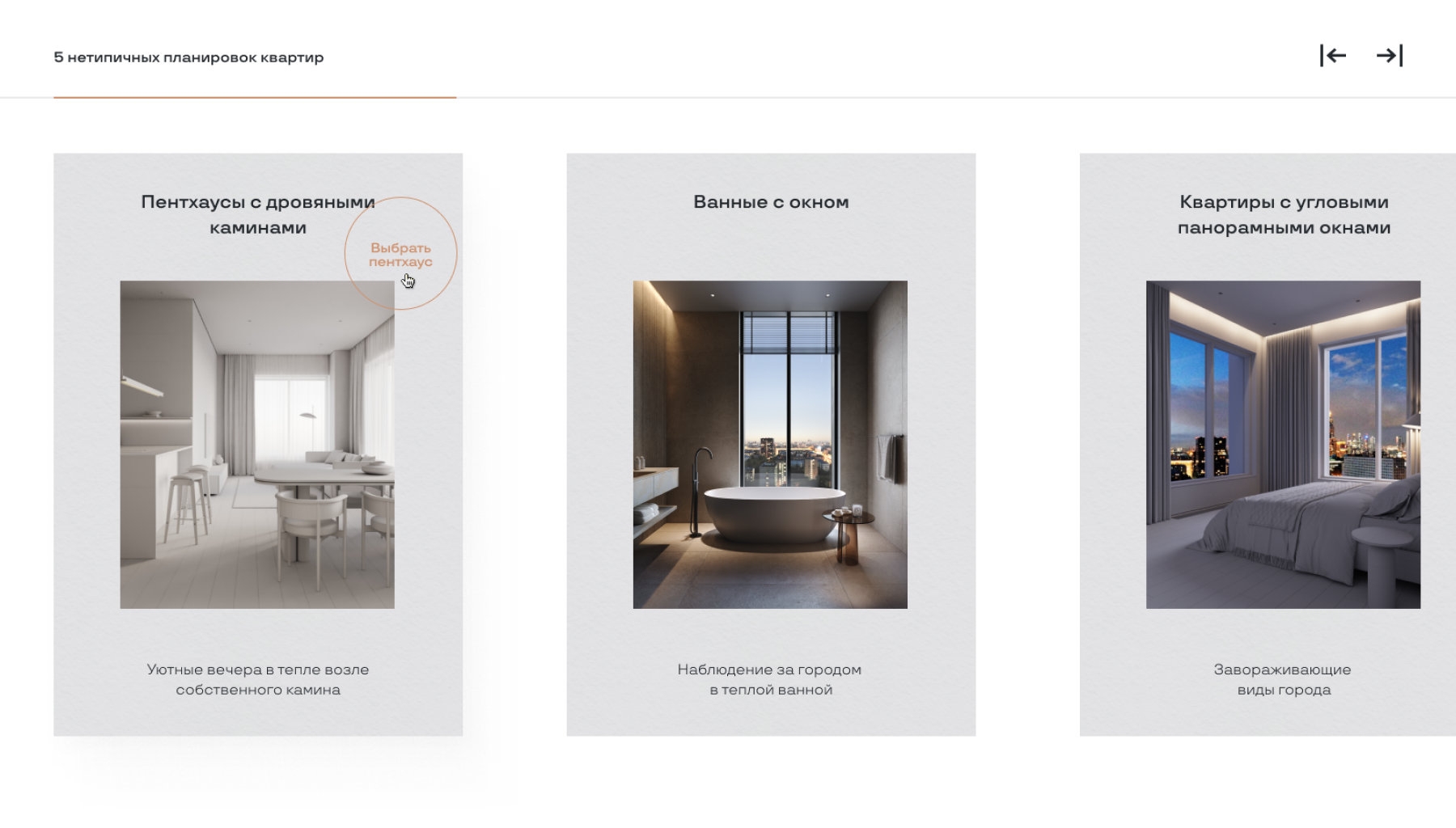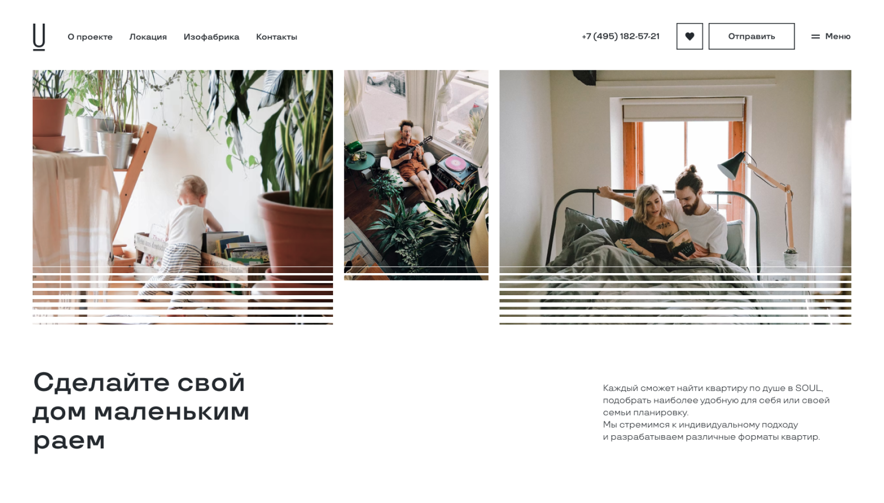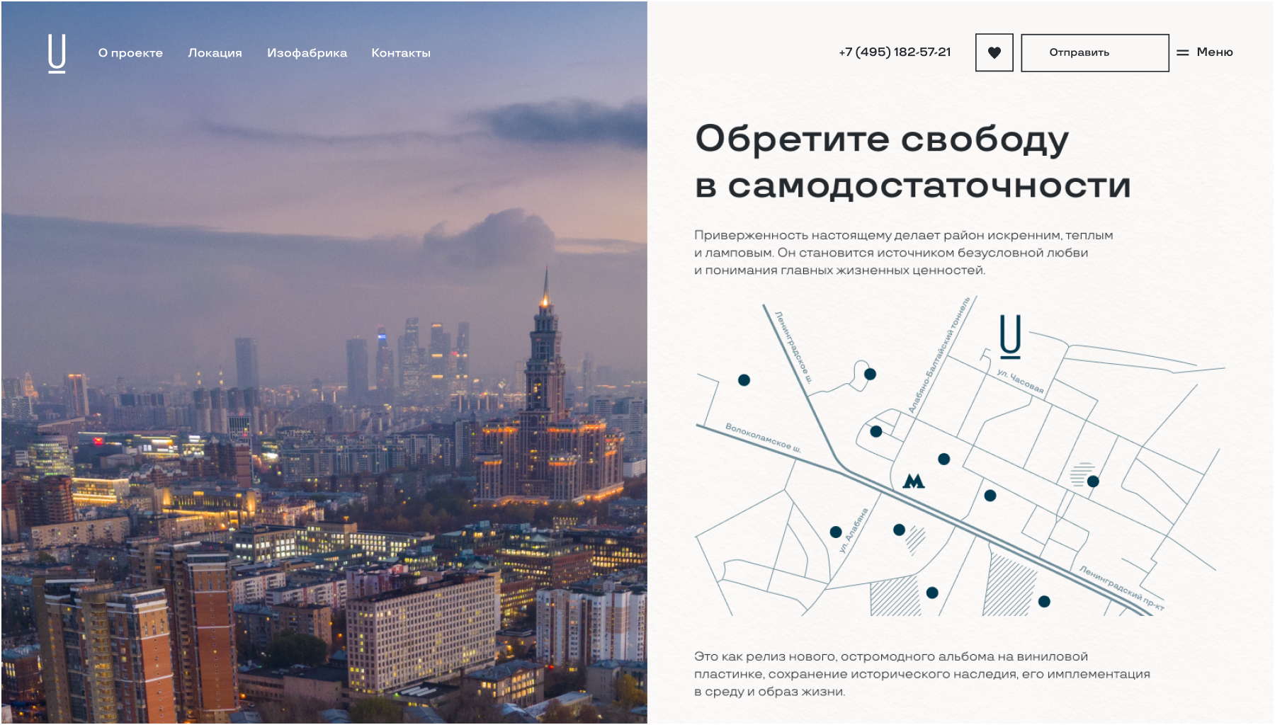 Использовали изображения людей в теплой и уютной обстановке, чтобы потенциальные покупатели прониклись ламповостью и душевностью нового комплекса. При этом не забыли и про остальные важные для покупателей моменты — красиво рассказали про историю и инфраструктуру ЖК, разработали удобный каталог квартир с возможностью фильтрации по параметрам и особенностям квартир.