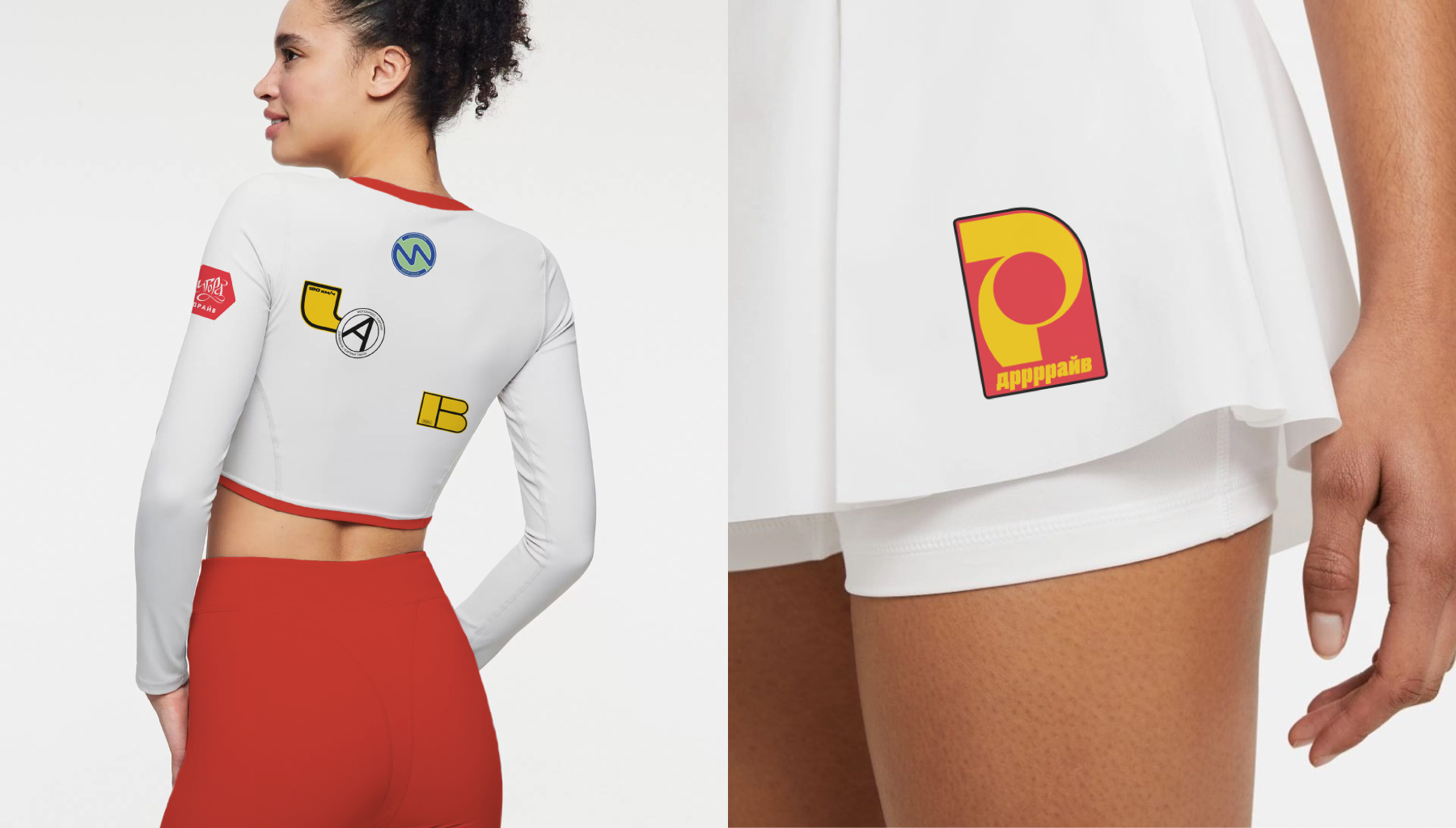 В продолжение коллекции мы разработали форму для черлидеров. Комплект формы состоит из бомбера, рашгарда, юбки и леггинсов. Графика на униформе сохраняет эстетику патчей.