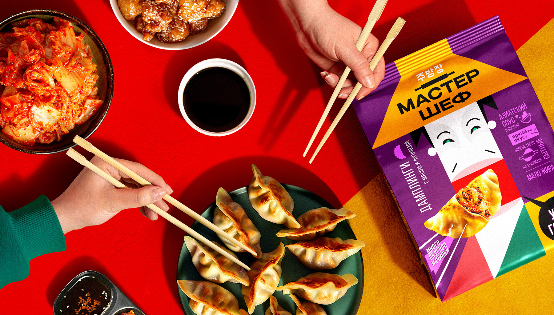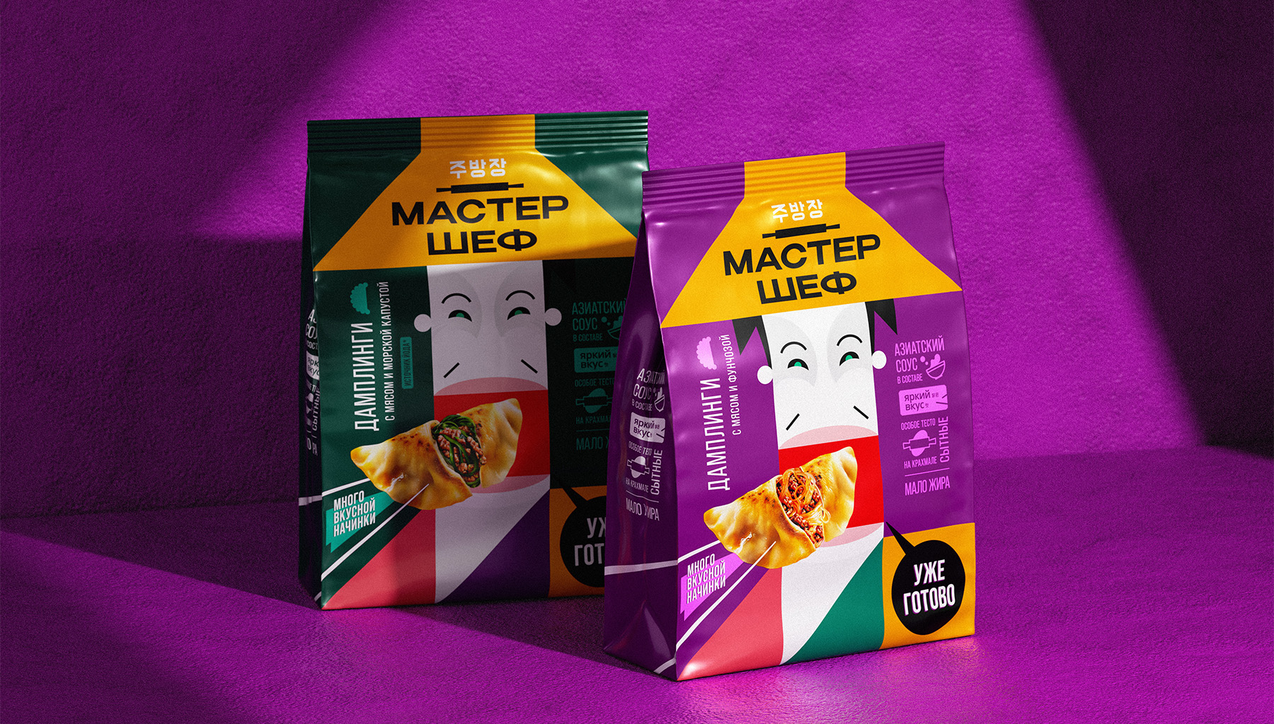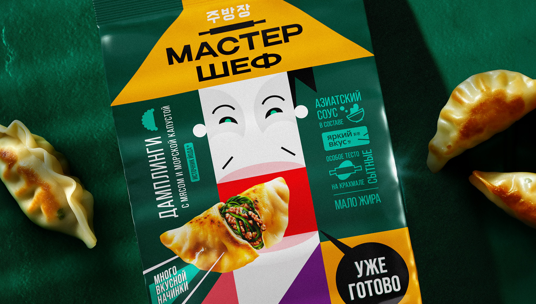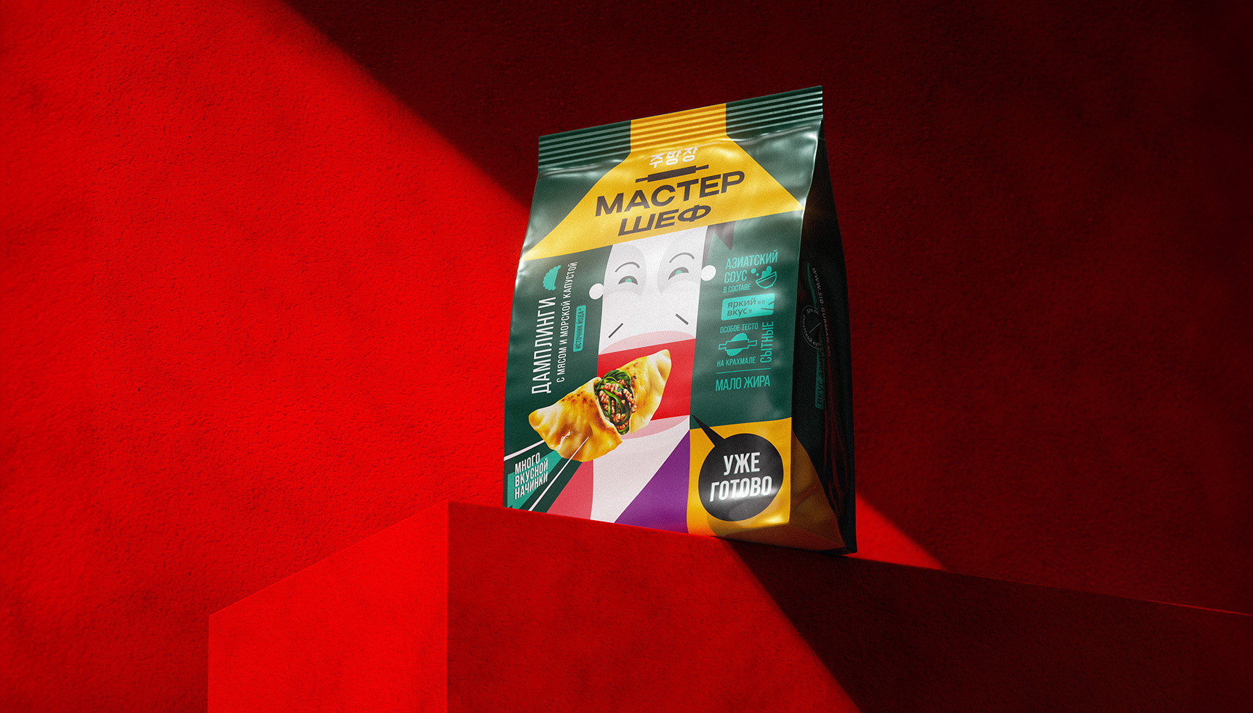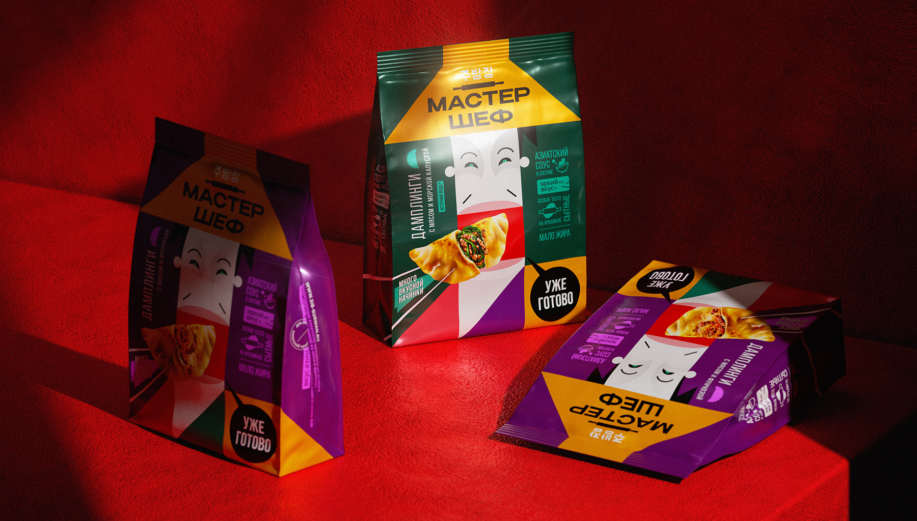 Наши усилия сосредоточились на создании отличительного бренда среди разнообразных европейских интерпретаций азиатской кухни и обыденных продуктов. Мы воплотили эту задачу в дизайне упаковки для дамплингов, которая вдохновлена эстетикой азиатских плакатов и художественным наследием Икко Танака.