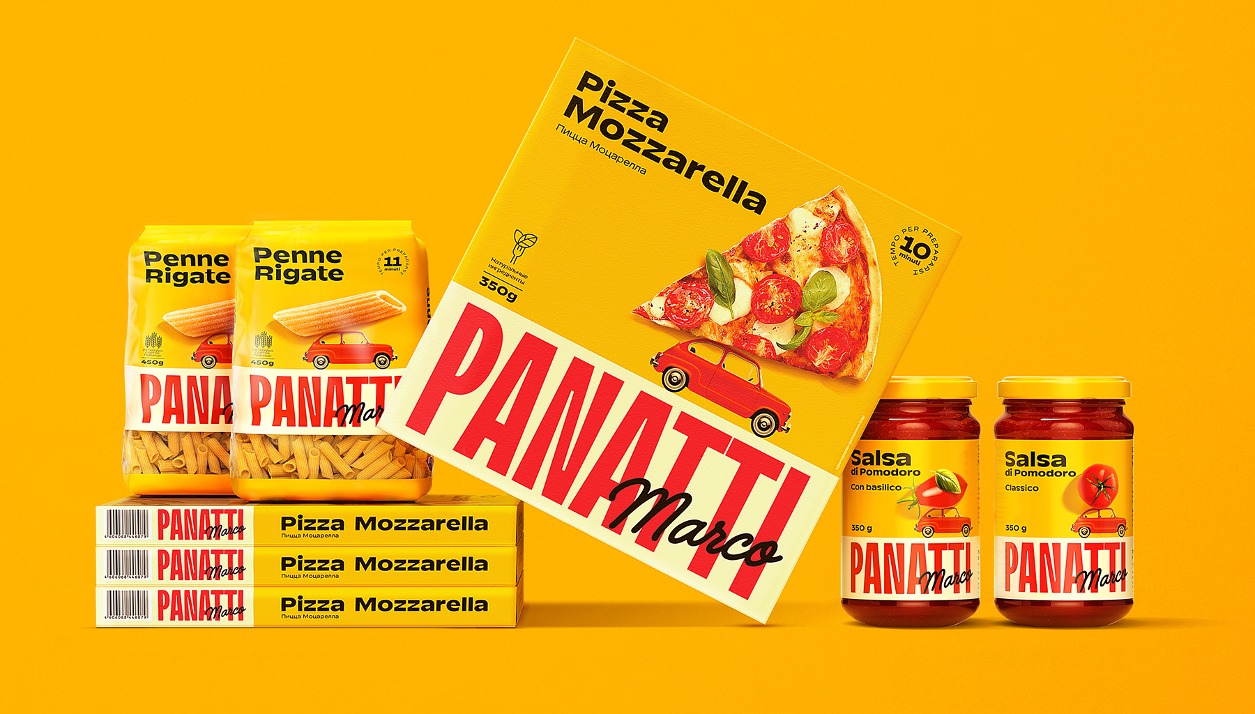 Теплая концепция итальянской семьи транслируется насквозь: нейминг, метафорический концепт, визуальная идентификация, продукты. Знаменитый Fiat 500, гиперболизированная подача фуд зоны, ощущение кинематографического постера – все это делает дизайн честным. Ему веришь и ни на минуту не сомневаешься, что внутри – качественные итальянские продукты.