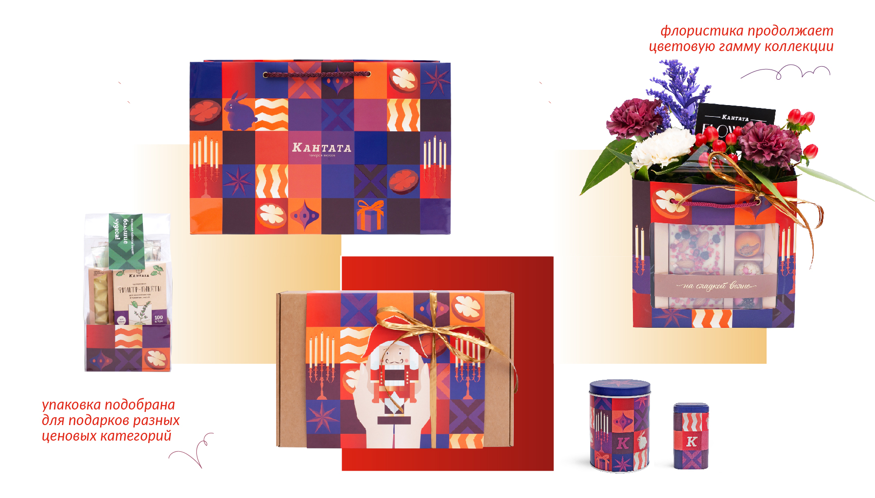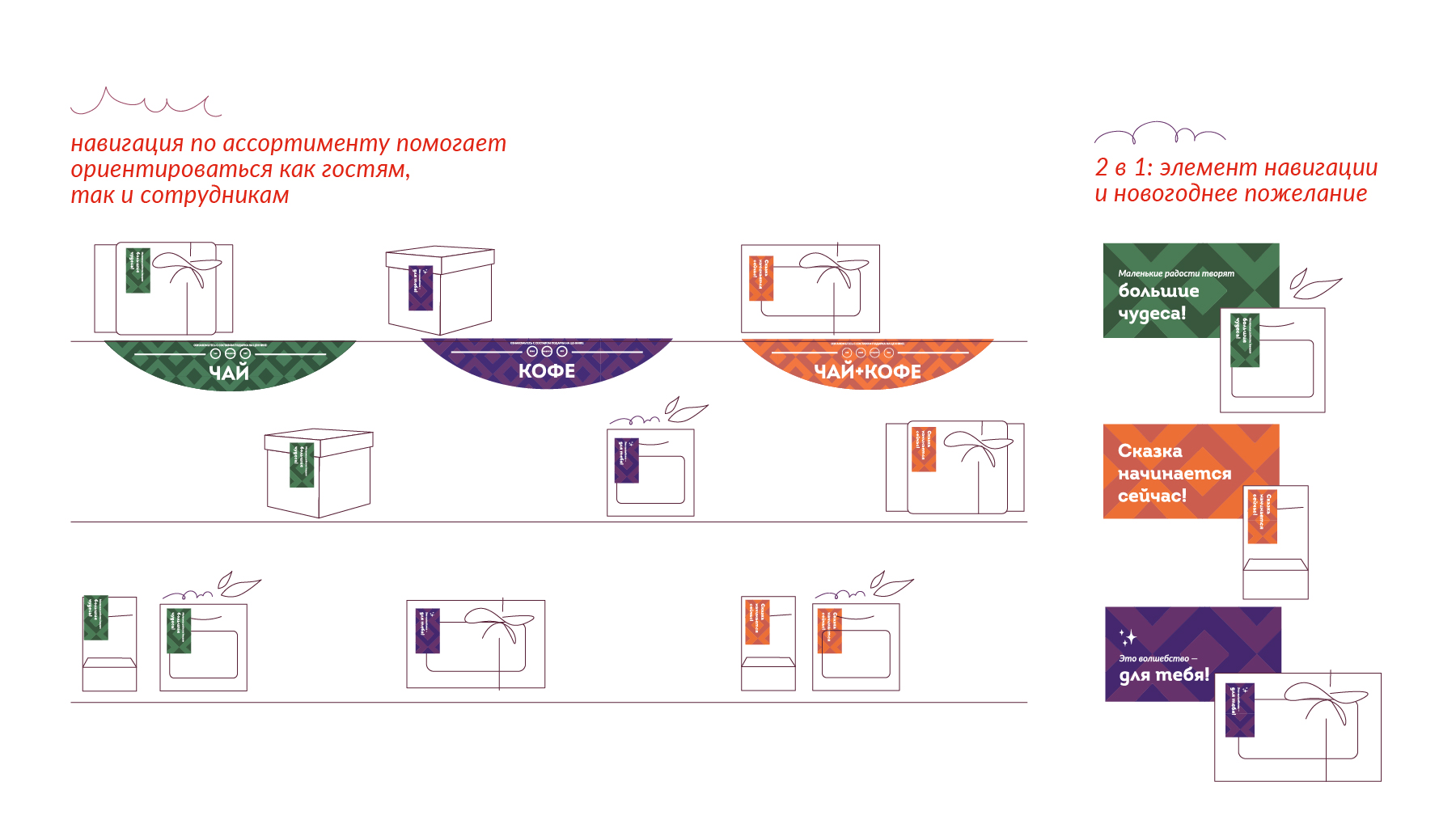 Коллекция новогодней подарочной упаковки для сети магазинов чая, кофе и сладостей.