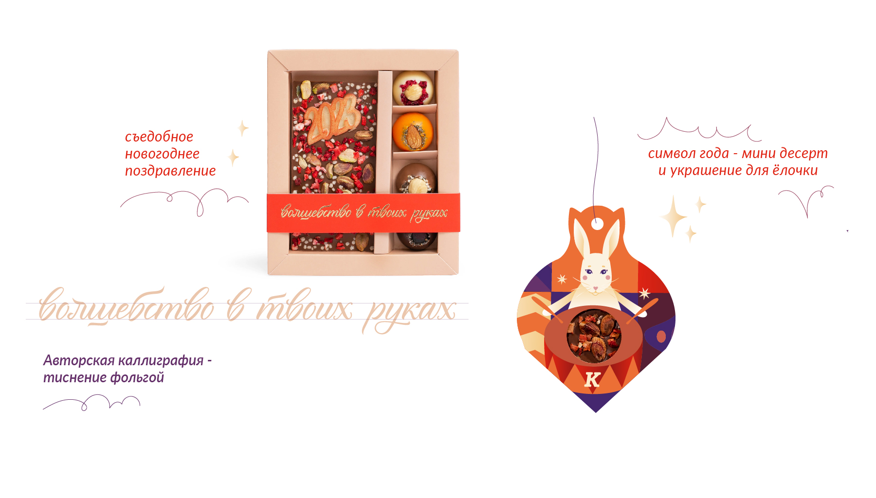 В состав коллекции вошли принтованые подарочные формы, аксессуары, линейка лимитированных сладостей собственного производства, стаканчики для напитков с собой, элементы витринистики.