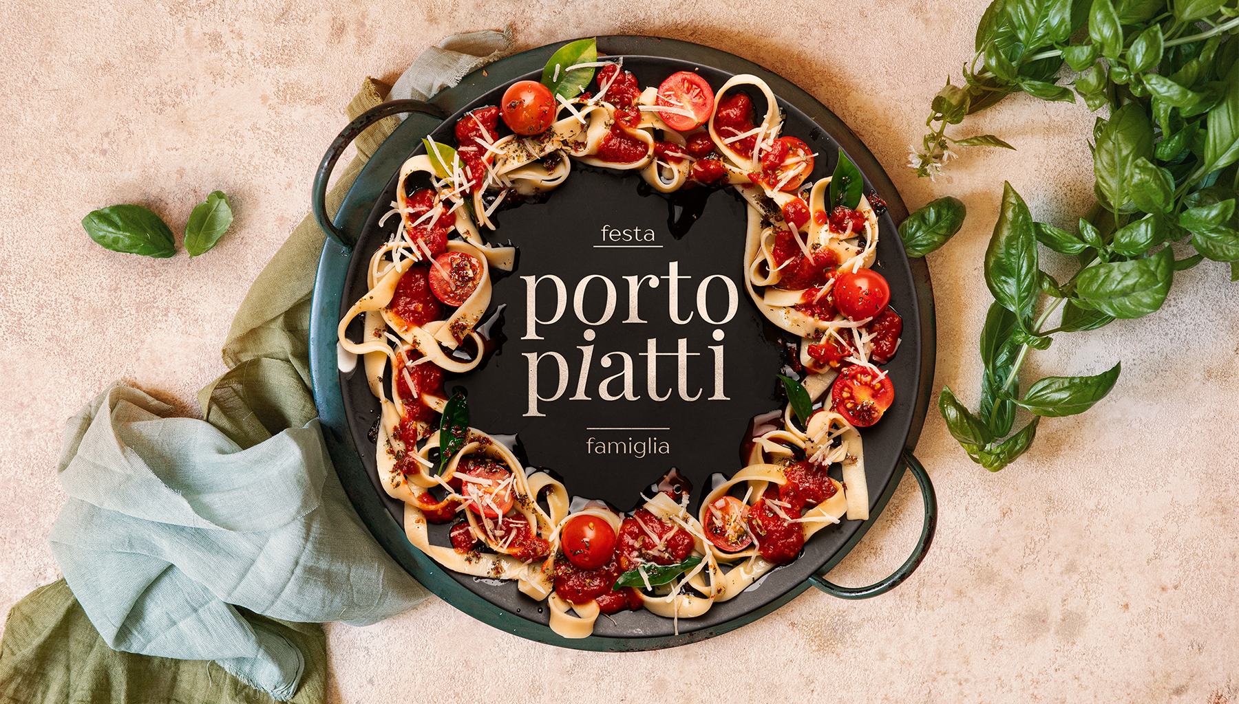 Основой для нейма Porto Piatti послужило традиционный для Италии деревянное блюдо, на котором гостеприимные итальянские хозяйки выносятся гостям разнообразные угощения.