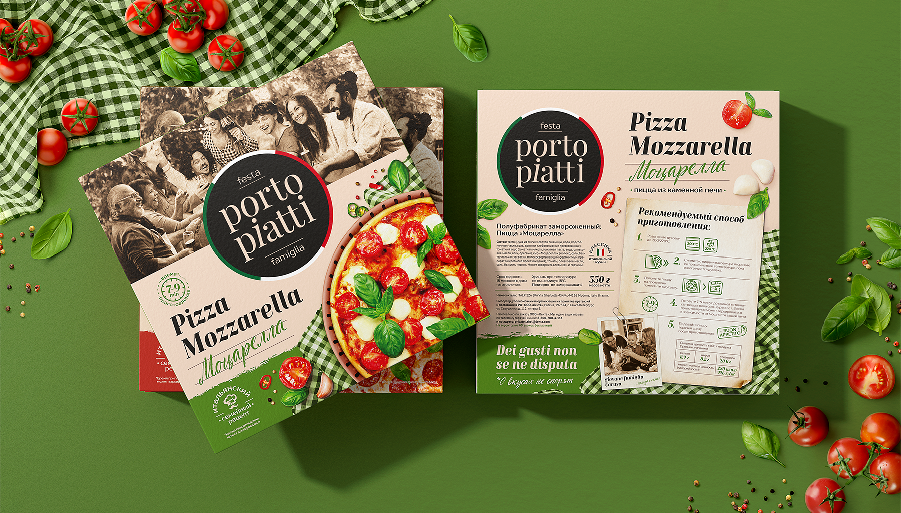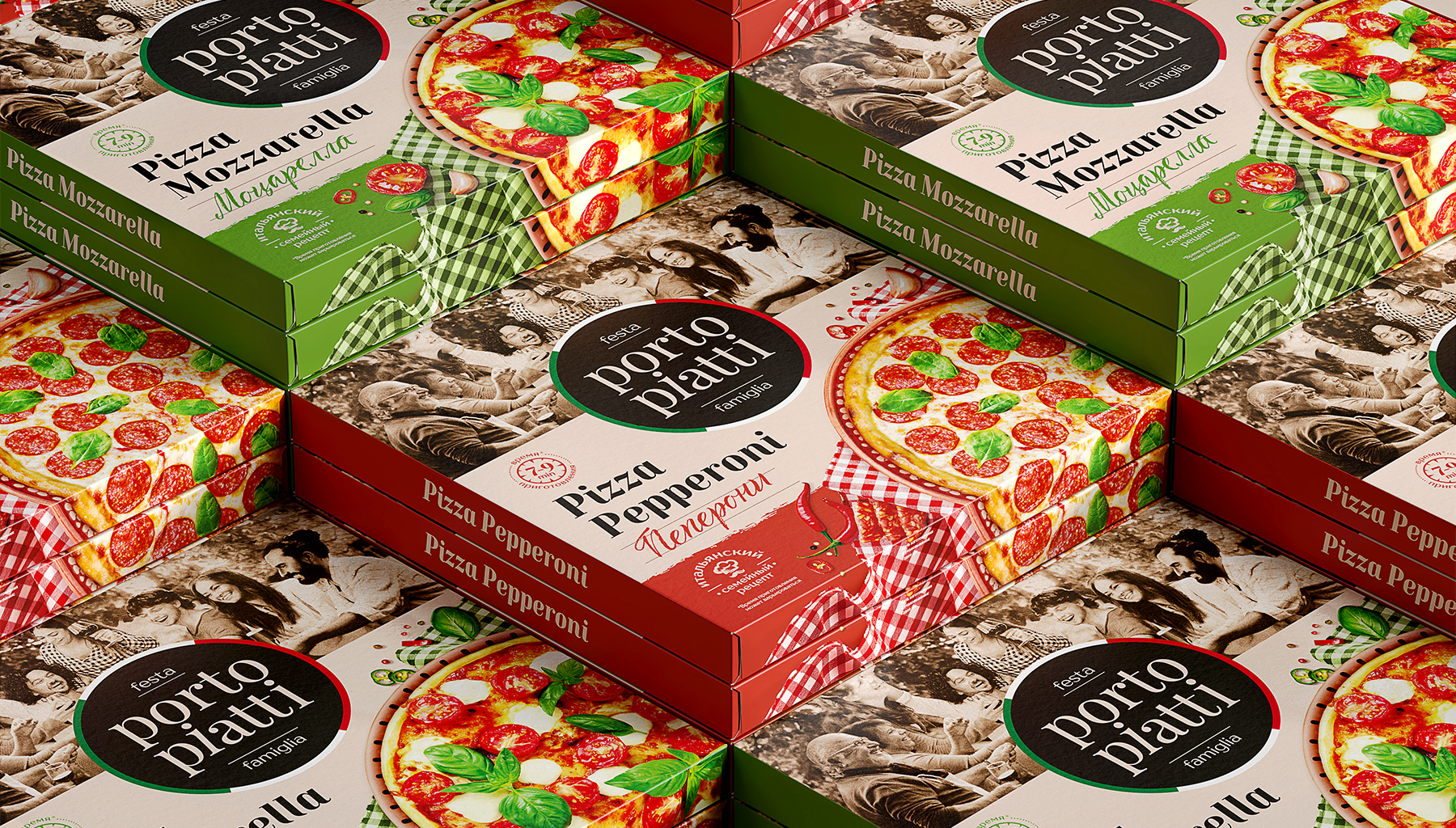 Мы стремились создать «семейный» бренд, который будет одновременно итальянским и будет понятен локальному потребителю. Бренд, который бы вызывал только самые теплые эмоции. Поэтому при разработке дизайна мы использовали «семейные» фотографии, на которых запечатлены приятные и знакомые всем моменты: обед в кругу родных, посиделки с друзьями, душевные разговоры за чашечкой кофе и т. д.