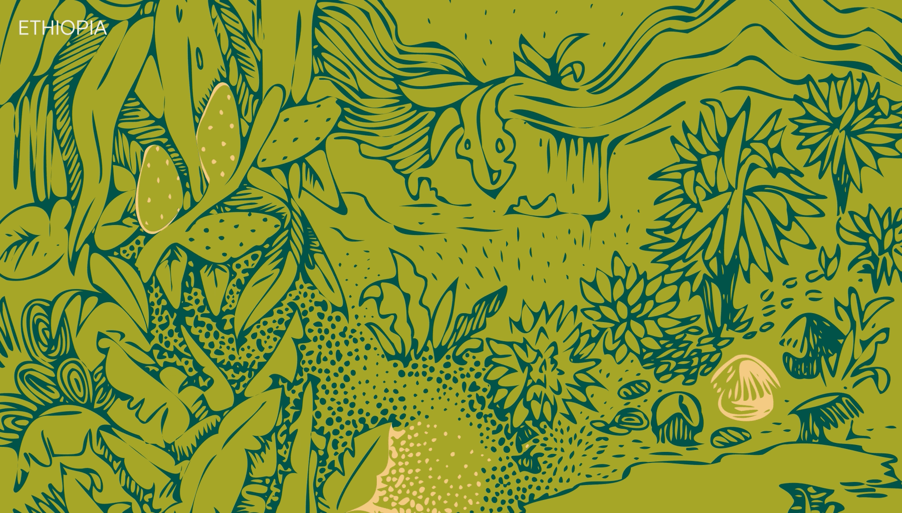 В центре айдентики лежит образ путешествия в глухие джунгли и таинственные места, куда добраться крайне сложно. С сюжетных иллюстраций, включаюших в себя основные, знаковые места из локаций откуда родом кофейные зерна, мы переносим покупателя в небольшое приключение
