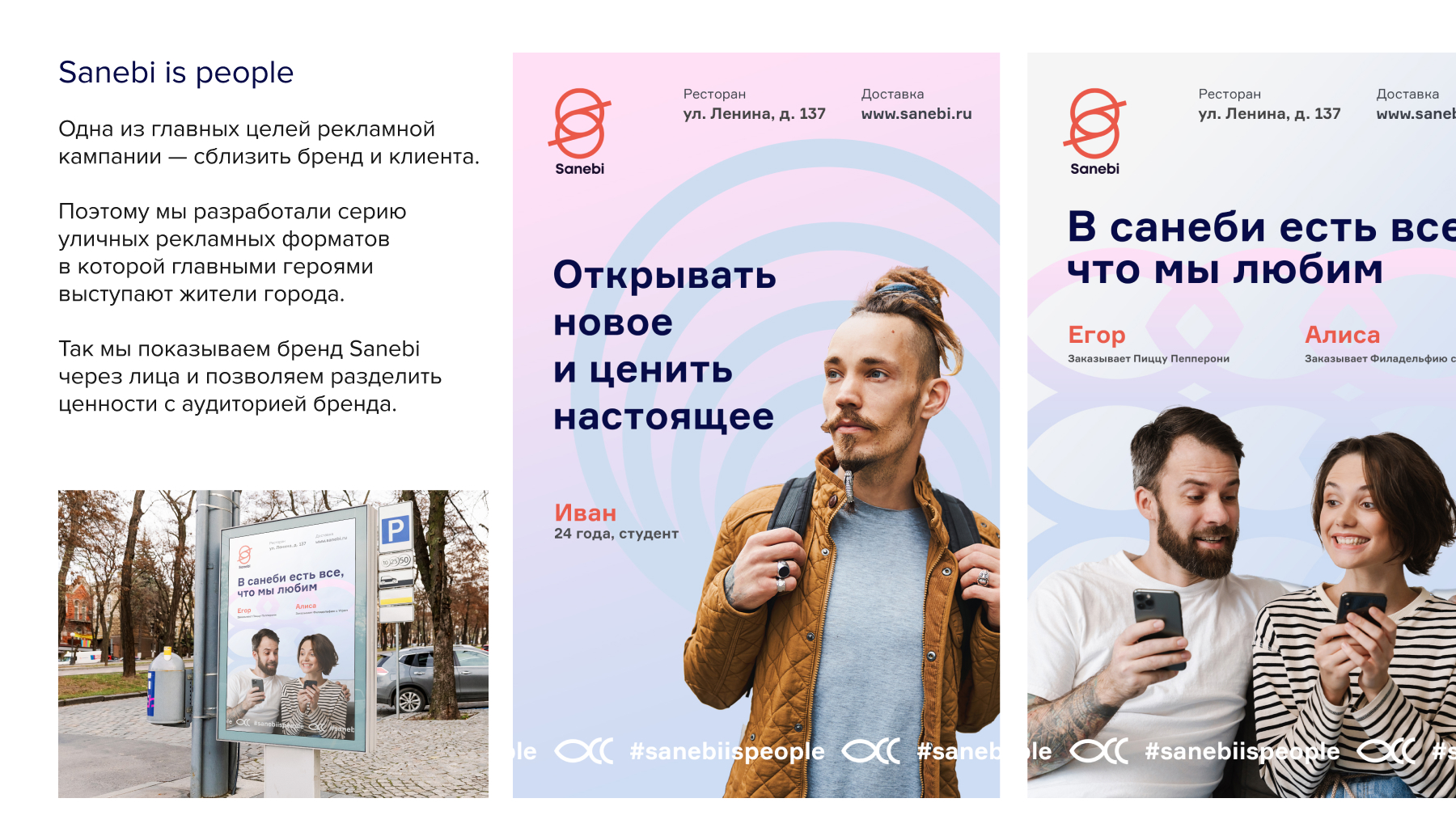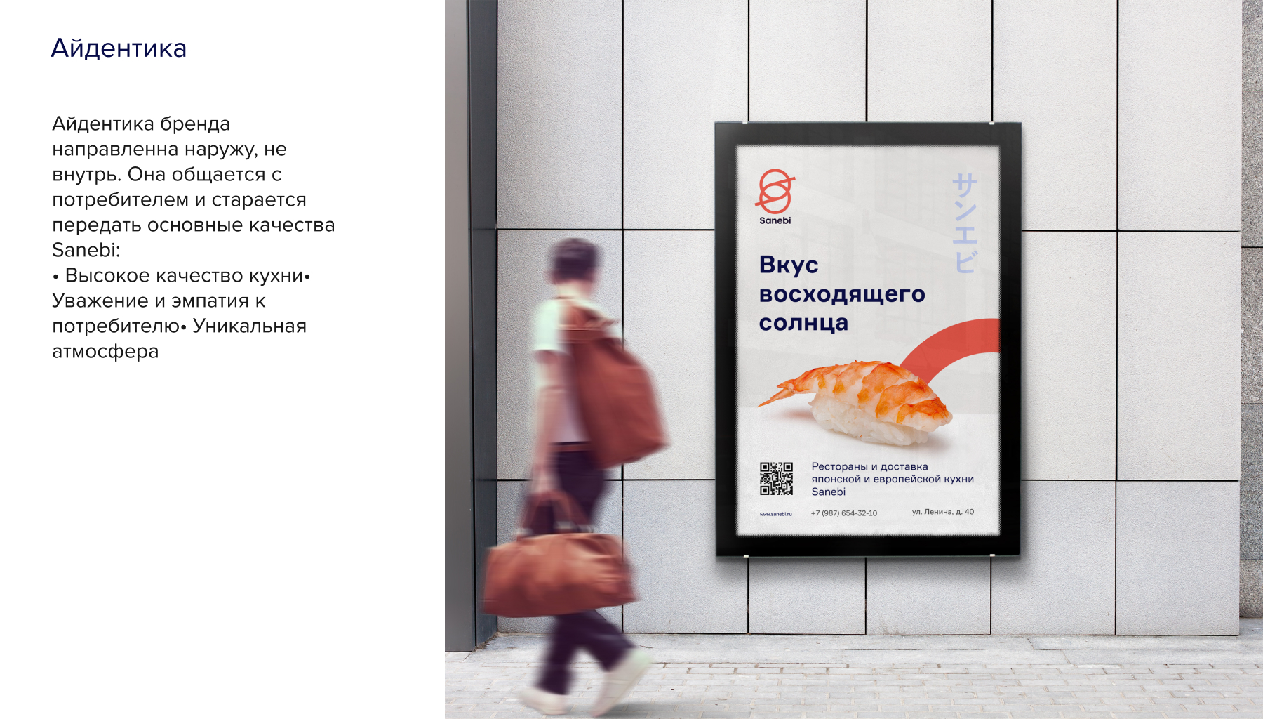 Айдентика бренда направленна наружу, не внутрь. Она общается с потребителем и старается передать основные качества Sanebi: