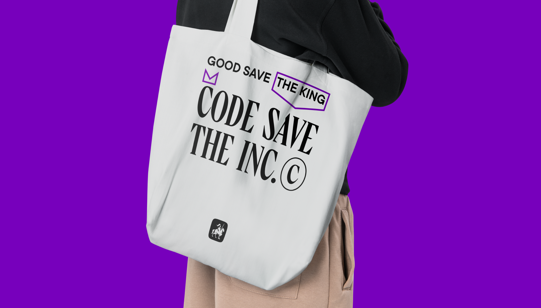 Мы не стали стесняться своего решения и поместили в логотип IT-рыцаря на коне. Получился актуальный образ с отсылкой к рыцарскому ордену в виде каллиграфического гребня. Основной элемент фирменного стиля — трёхмерные рыцари. Это настолько понятный и узнаваемый образ, что хорошо читается с большого расстояния любым человеком. Брендинг работает на уровне текстур: можно использовать любые рыцарские атрибуты, но они всегда будут серебряными, чёрными или переливающимися от фиолетового к оранжевому.