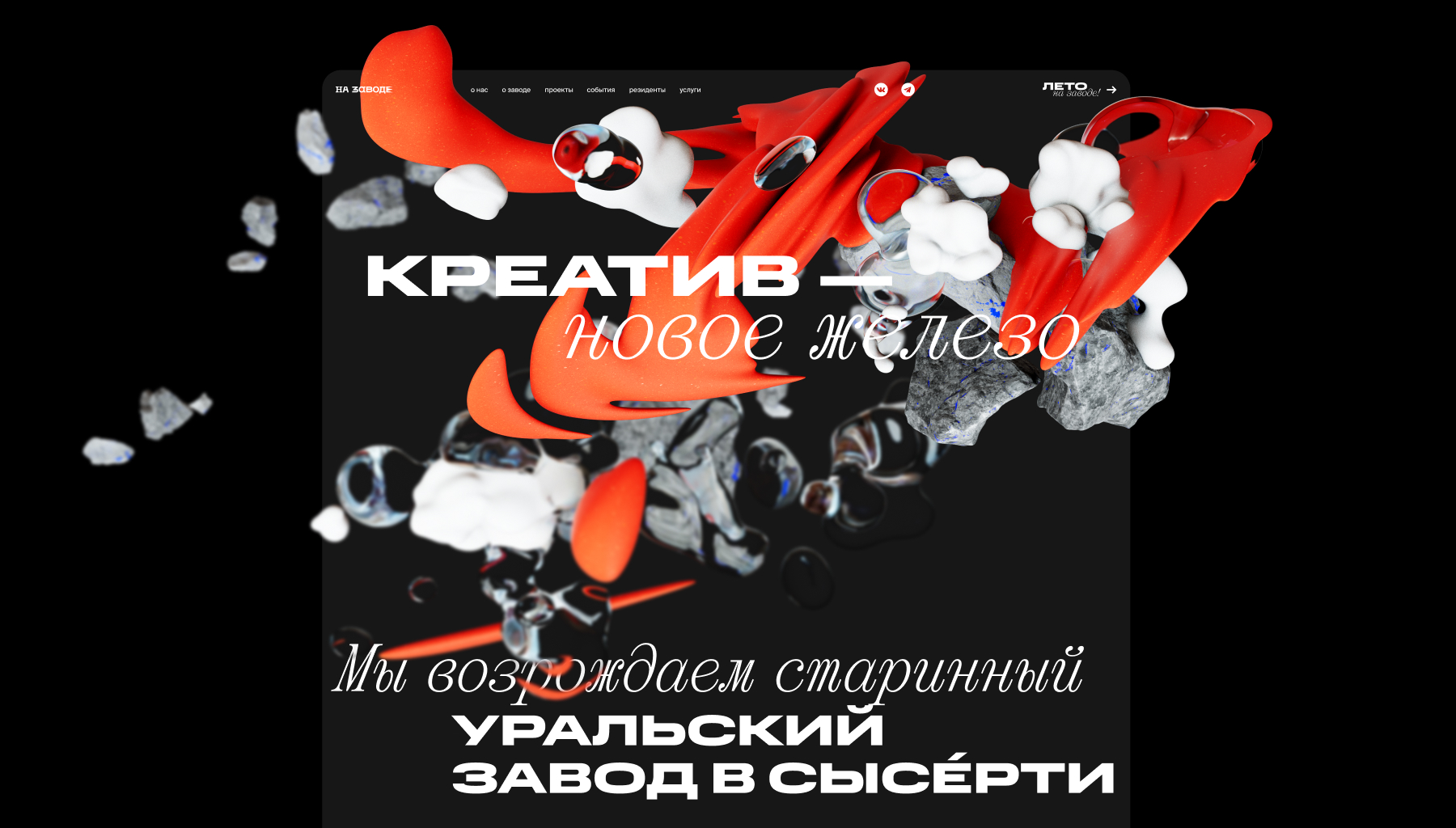 Исторически для производства железа были необходимы 4 элемента: вода, камень, огонь, воздух. С тех пор многие процессы и смыслы изменились, а заводы остались. Завод Турчаниновых-Соломирских сейчас — место, где благодаря всё тем же элементам, но в актуальном прочтении, создаётся новый сплав — креатив.