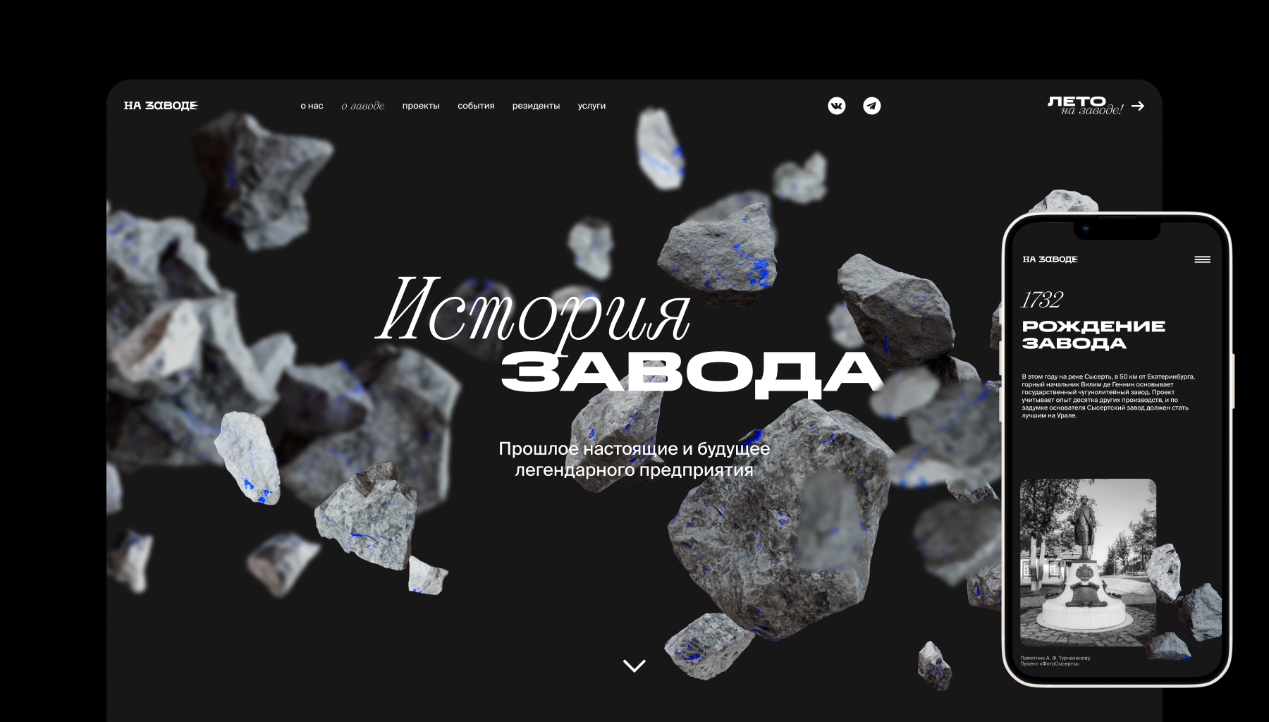 Помимо айдентики был разработан сайт кластера, позволяющий ознакомиться с историей места, узнать о событиях, резидентах и новых проектах.