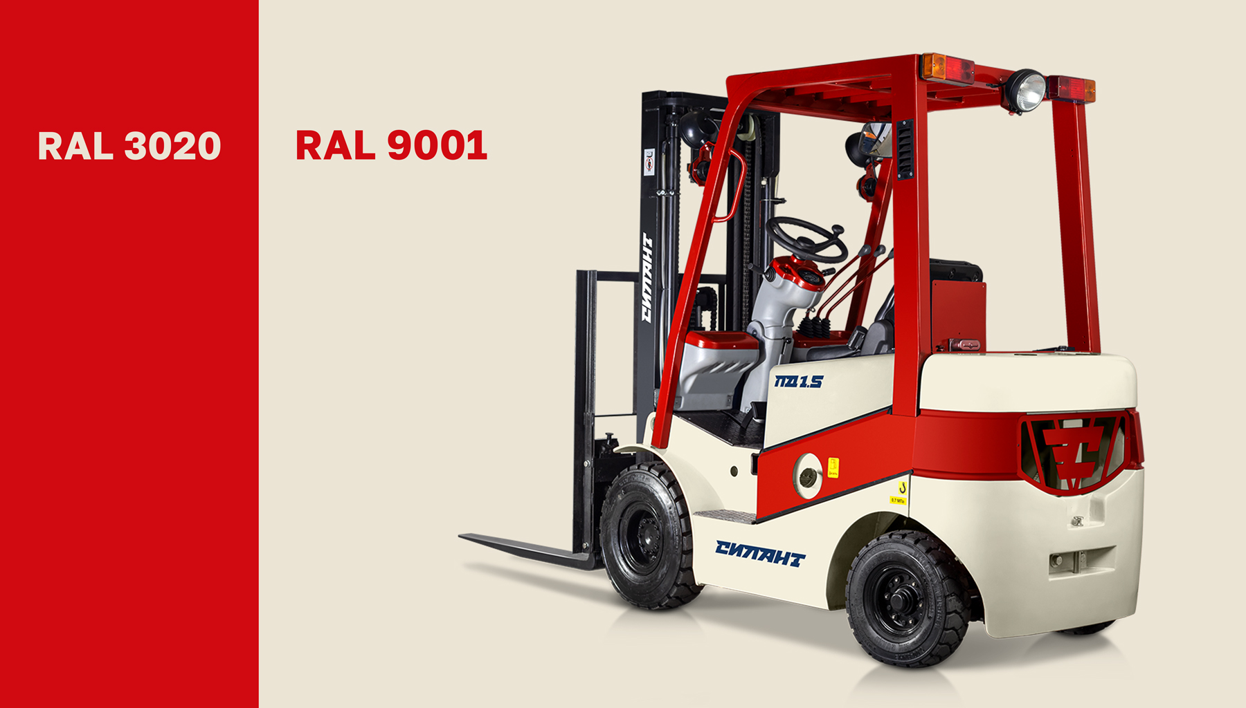 Сам погрузчик — красно-бежевый. Сочетание цветов — редкий приём в складской технике. Яркий погрузчик хорошо заметен в условиях низкой освещенности и сумерек. Нарядное и контрастное сочетание лучше подходит дружелюбному характеру бренда СИЛАНТ.