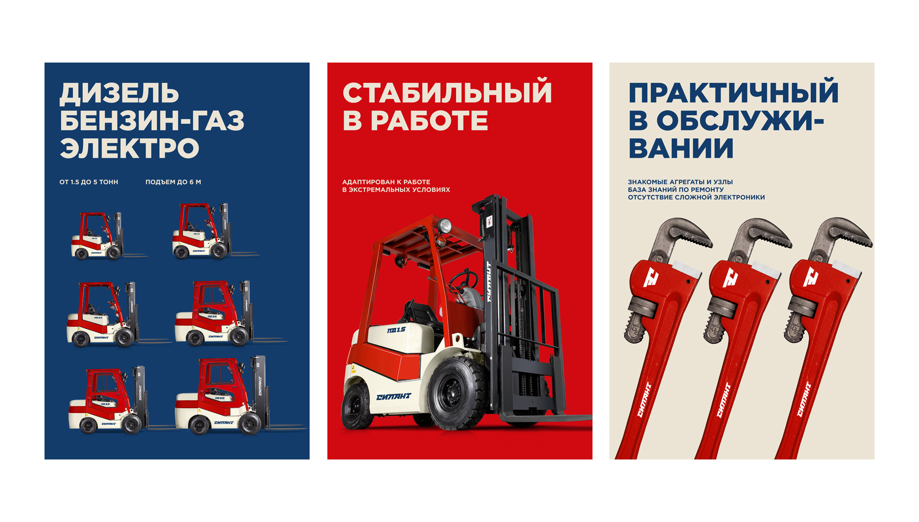 Написание логотипа брутальное, техничное и устойчивое. «Зарубы» на буквах — рифма с айдентикой завода. Для идентификации всего модельного ряда были разработаны уникальные шрифтовые и цифровые обозначения. Так, бренд и техника приобретают цельность, свойственную зрелым брендам в данной категории.