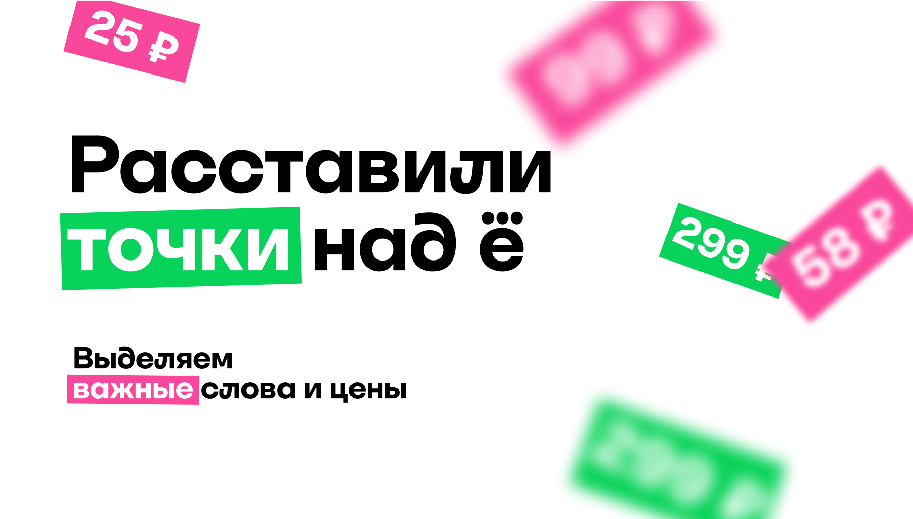 Изюминка снаружи магазина и на фасаде ТЦ заключена в третьей точке над буквой ё в логотипе сети. Несмотря на видимую простоту, Ещё — всегда про нечто большее. Вот и точек больше, чем обычно.