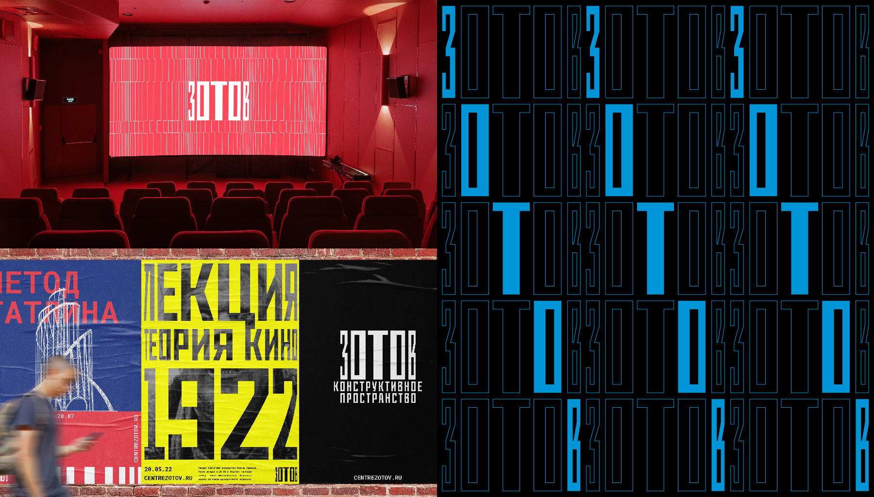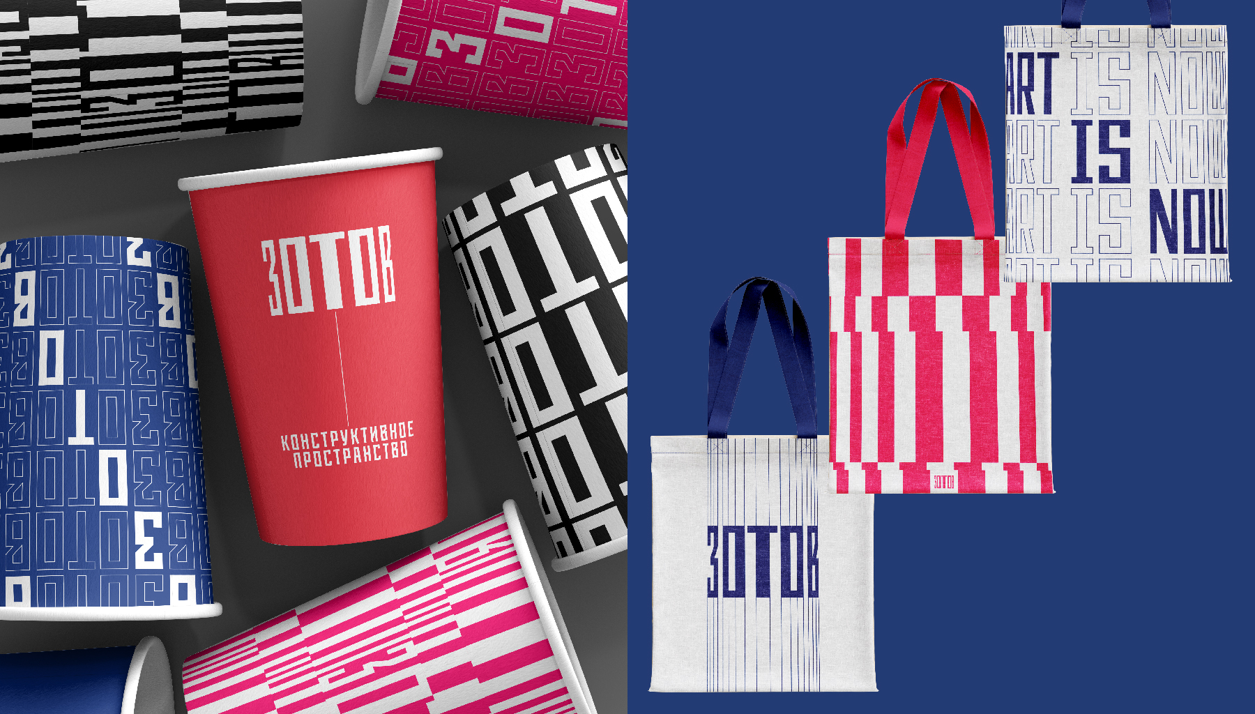 Выразительная форма здания, продиктованная функцией кольцевого конвейера, легла в основу визуальной идентичности. Логотип напоминает цилиндрический фасад, а в фирменном паттерне узнается ритм его вертикалей. Конструктивистский характер также нашел отражение и в фирменном шрифте Zotov.