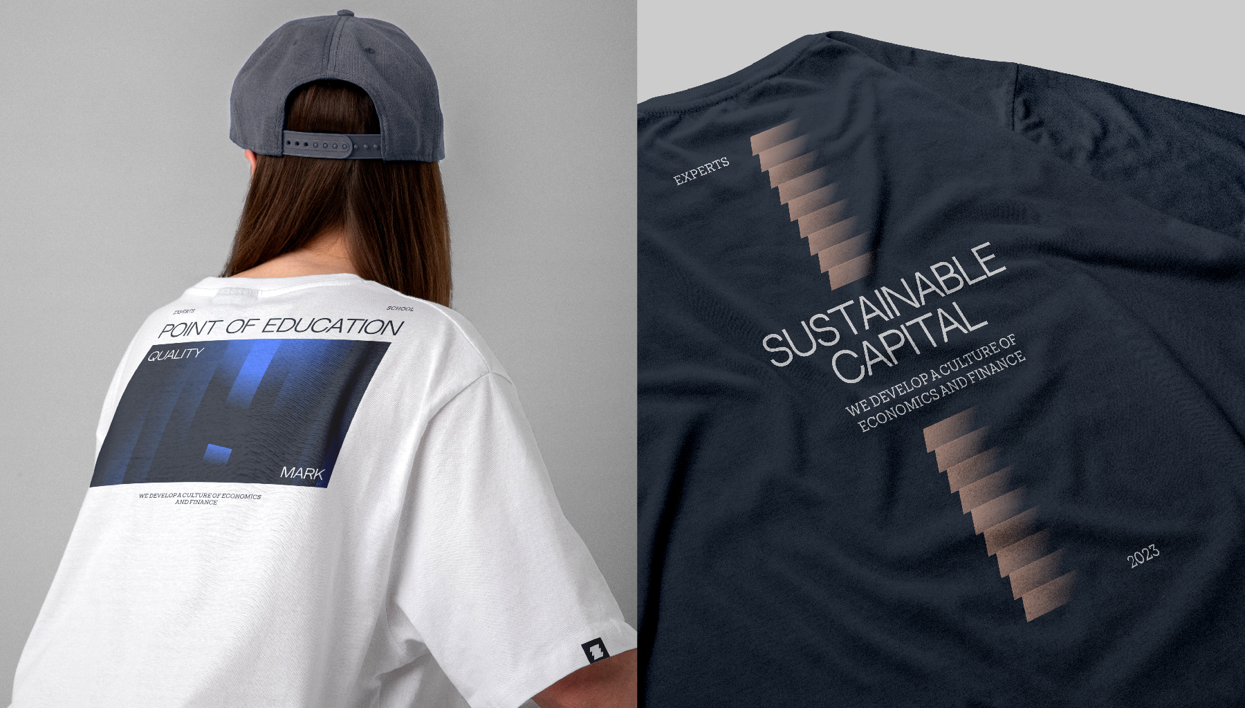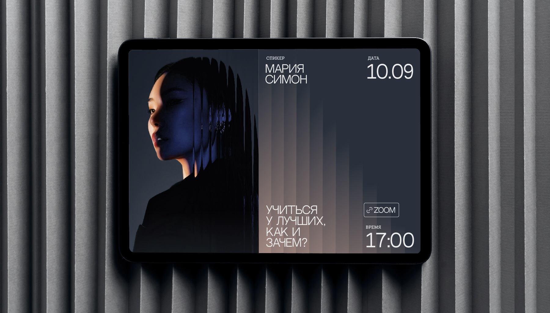 Логотип состоит из фирменного знака и шрифтового начертания в нижнем регистре. Главенствующий элемент — синие панели жалюзи, которые собираются в заглавную букву названия школы и олицетворяют лестницу карьерного и экономического роста. Горизонтальные формы легко превращаются в узнаваемые элементы, и с их помощью можно создать эффект в виде прозрачного искажения на фотографиях.