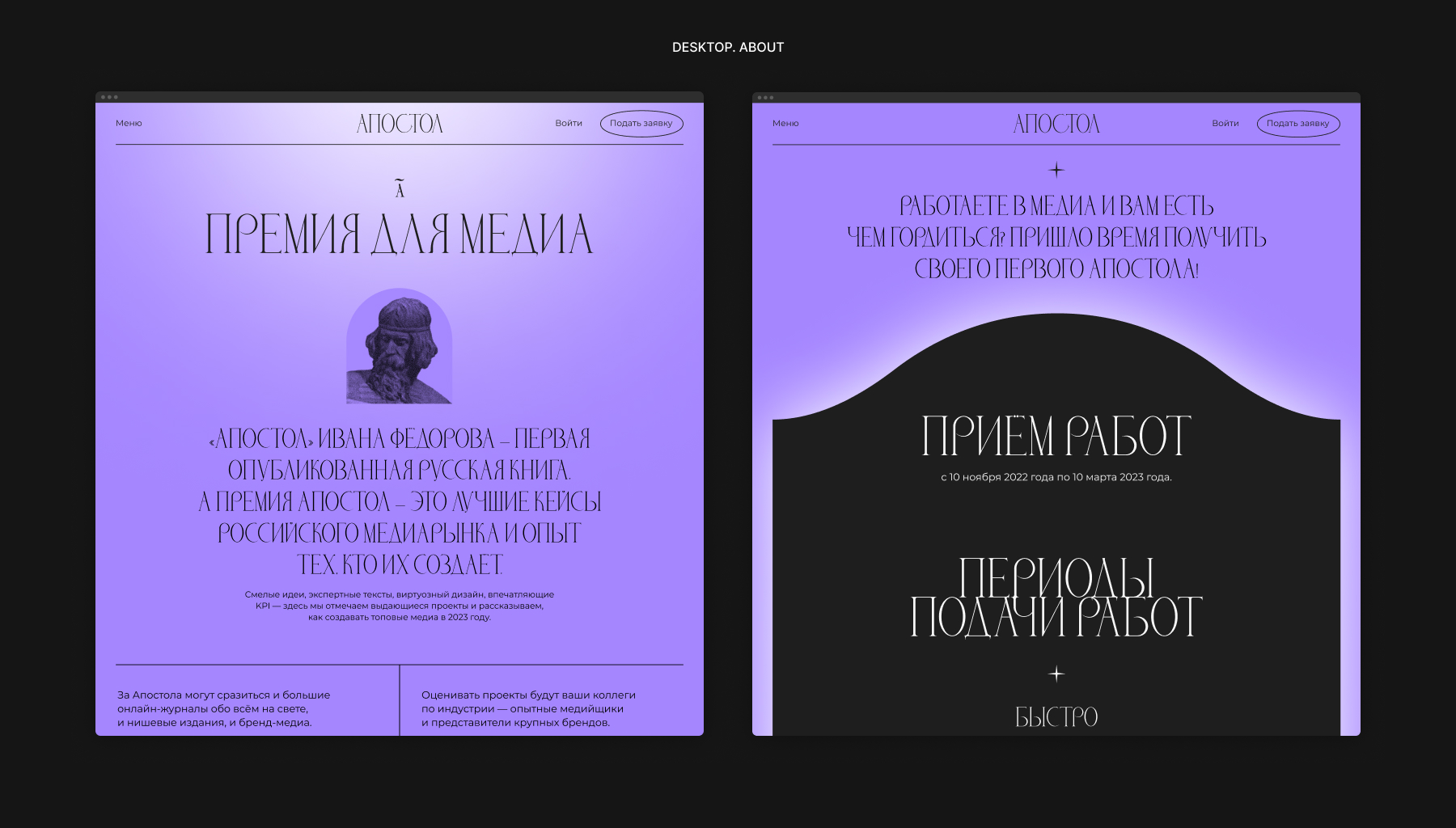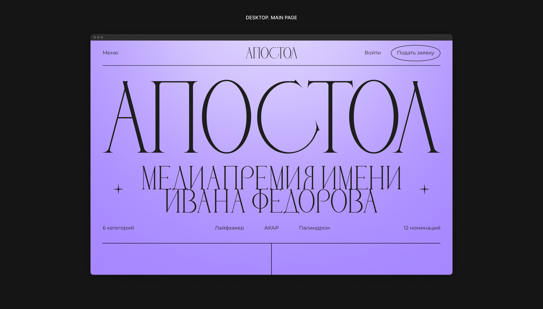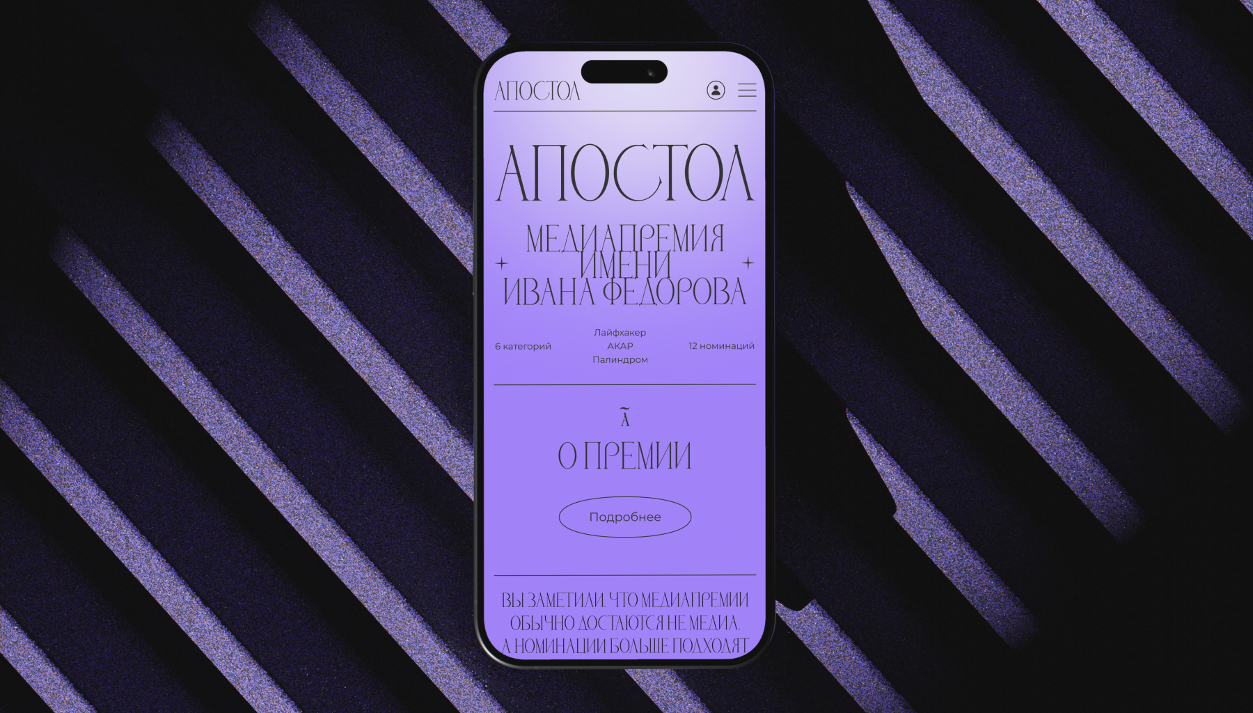 Мы создавали айдентику для премии «Апостол», которая оценивала лучшие медиапродукты российского рынка.