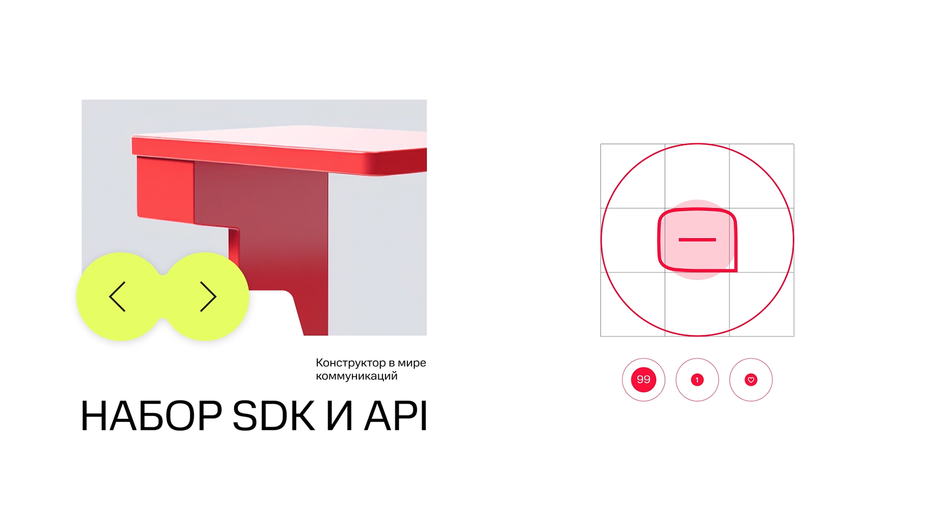 Основой визуального стиля стали формы интерфейсов будущего. Идея диалога обрела вид конструктора, где отдельные шейпы соединяются друг с другом, так же как услуги МТС Exolve, которые можно кастомизировать под каждый бизнес.