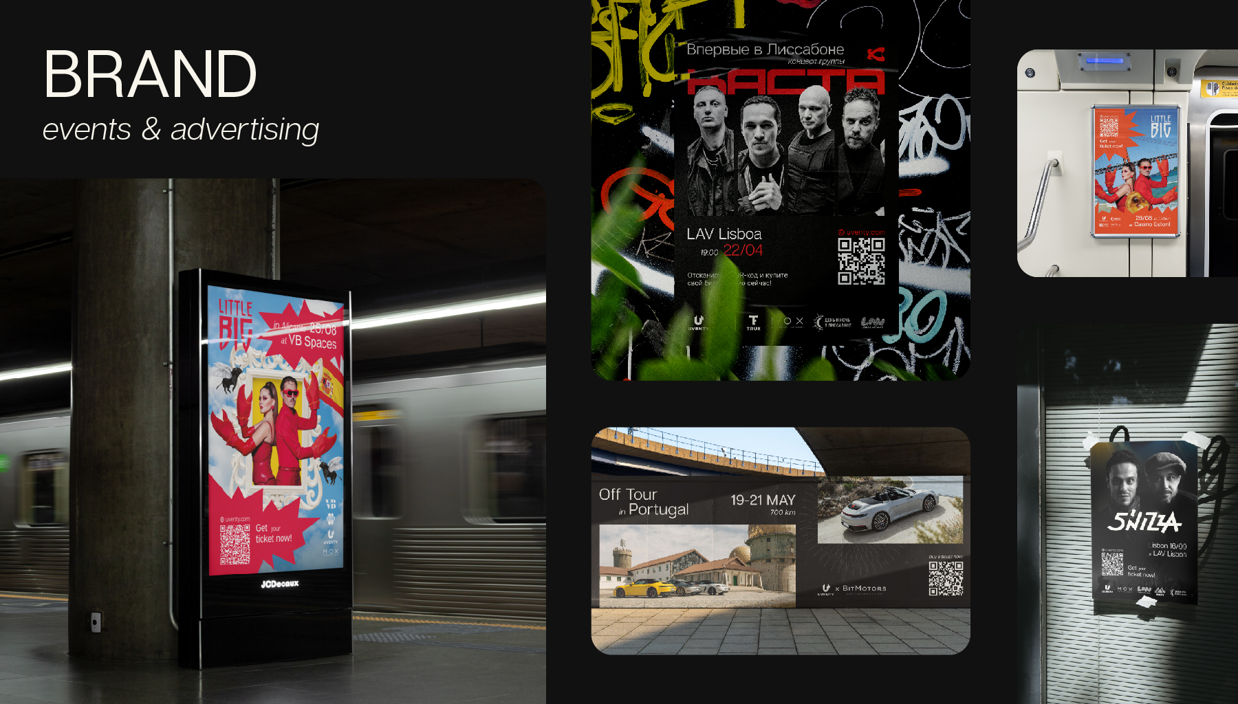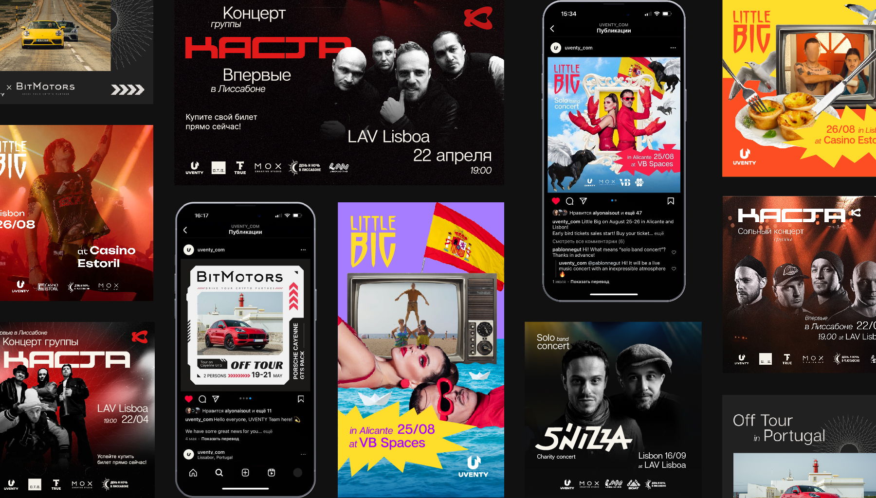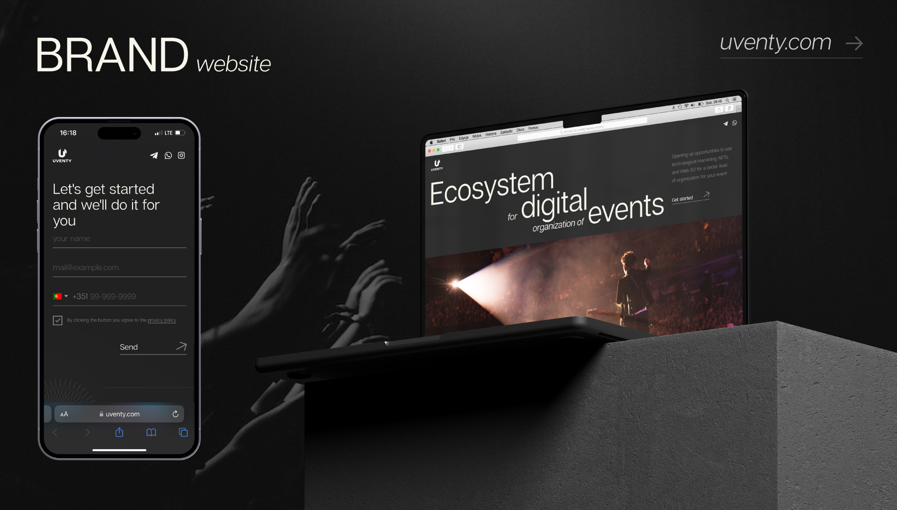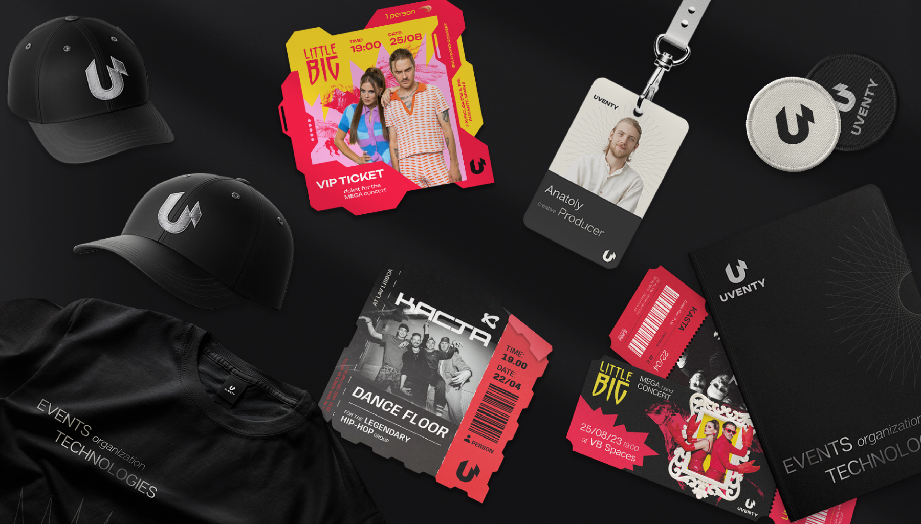 Итогами проекта стали разработка нейминга, логотипа, элементов фирменного стиля и продуктового сайта / тикетинговой платформы по продаже NFT билетов. Помимо необходимых базовых материалов мы разработали гайдлайны и шаблоны для рекламных кампаний мероприятий бренда (рекомендации по применению айдентики в партнёрских и спонсорских мероприятиях, шаблоны рекламных креативов, практические рекомендации по оформлению key visual, шаблон промо—лендинга для мероприятий, шаблоны для оформления всех актуальных для бренда социальных сетей) и полностью разработали key visual четырех мероприятий UVENTY.