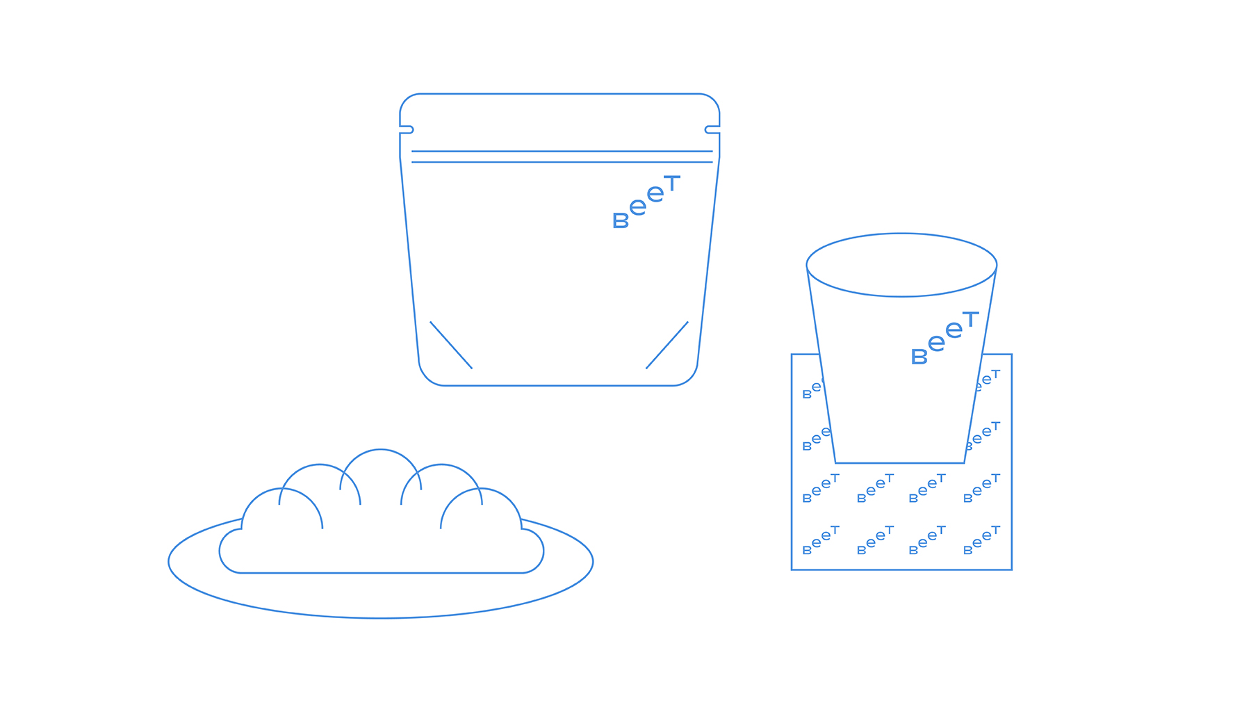 В оформлении фирменных носителей используется свободная верстка — буквы и элементы дизайна будто витают в воздухе. Сочетание белого, голубого и градиента на их основе поддерживает легкое настроение и создает ассоциации с небом.