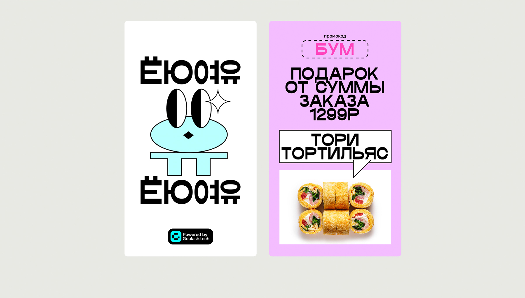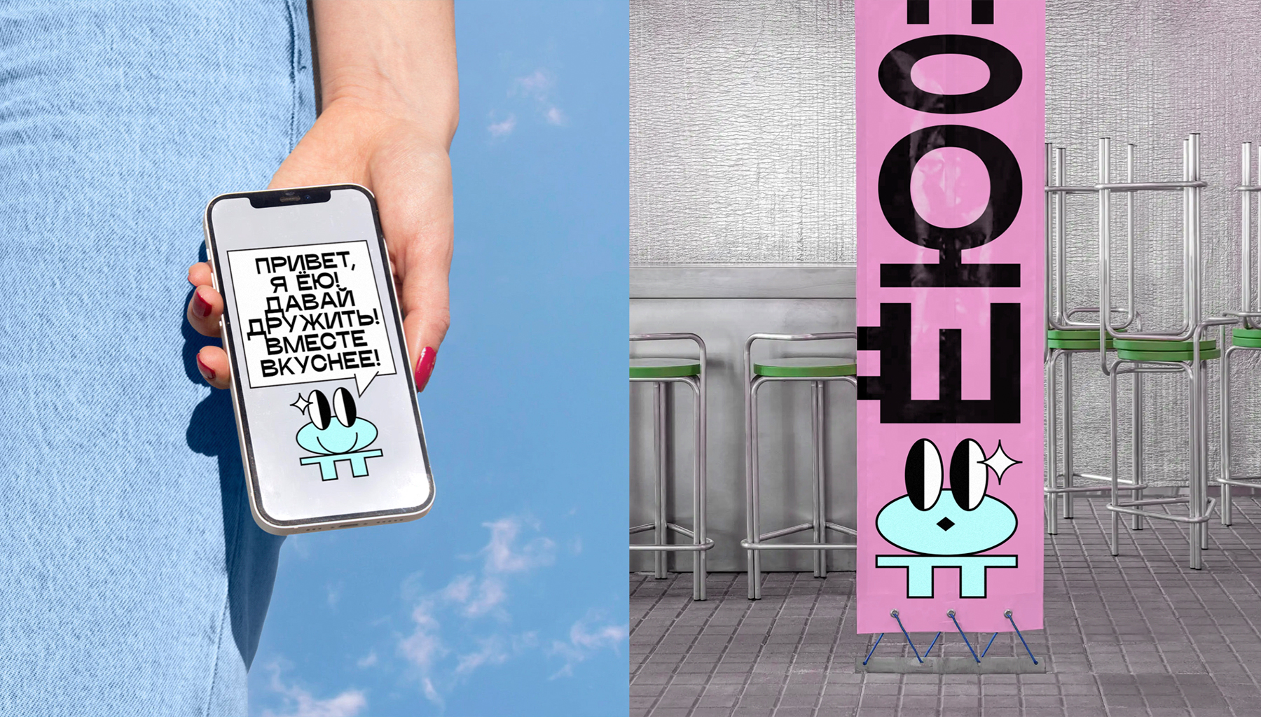 С таким посылом и появился фирменный бренд-персонаж — с позитивным и дружелюбным характером, который понимает, поддерживает, разделяет твои интересы и вкусы. Он — твой друг. С ним легко, комфортно и вкусно. Он часто с тобой — ведь многие мгновения жизни сопровождаются любимой едой: с ним можно посмотреть дораму или устроить домашнюю вечеринку. Это история про время вместе: здесь и дружба, и веселье, и забота, и близость в моменте. И «ЁЮ» предлагает тебе простую вещь — «давай поедим», ведь вместе вкуснее.