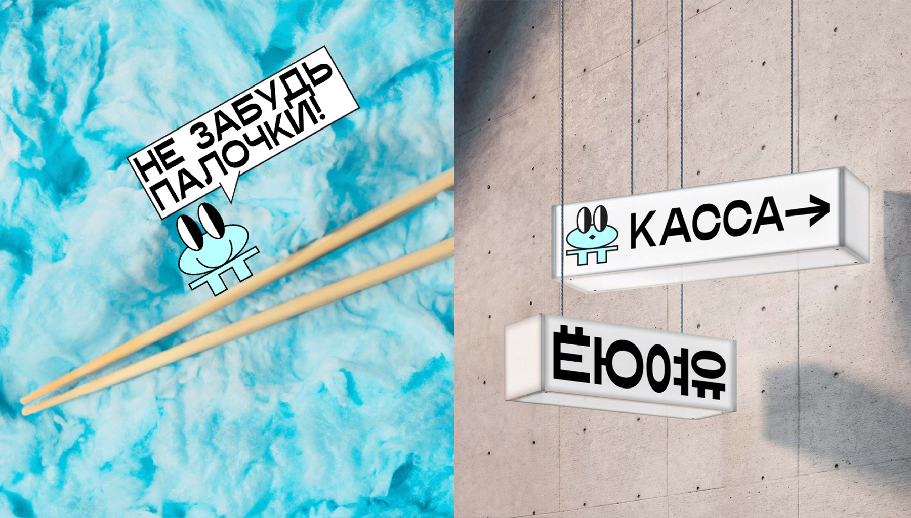 Персонаж получился из корейской буквы в названии, он игривый и эмоциональный. Визуально проект отсылает к азиатской культуре с её переизбытком цветов — пёстрые комиксы, вывески и аниме. И, конечно, яркие вкусы.