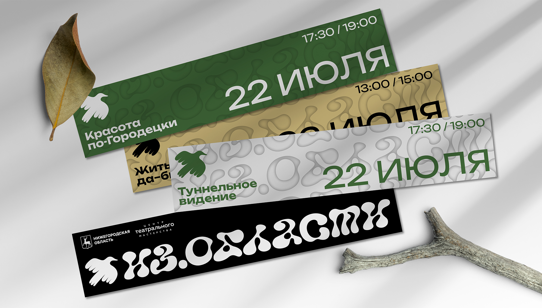 Брендинг Нижегородского театрально-исследовательского фестиваля «Из.Области», разработанный совместно с дизайн-бюро Burøgrafia.