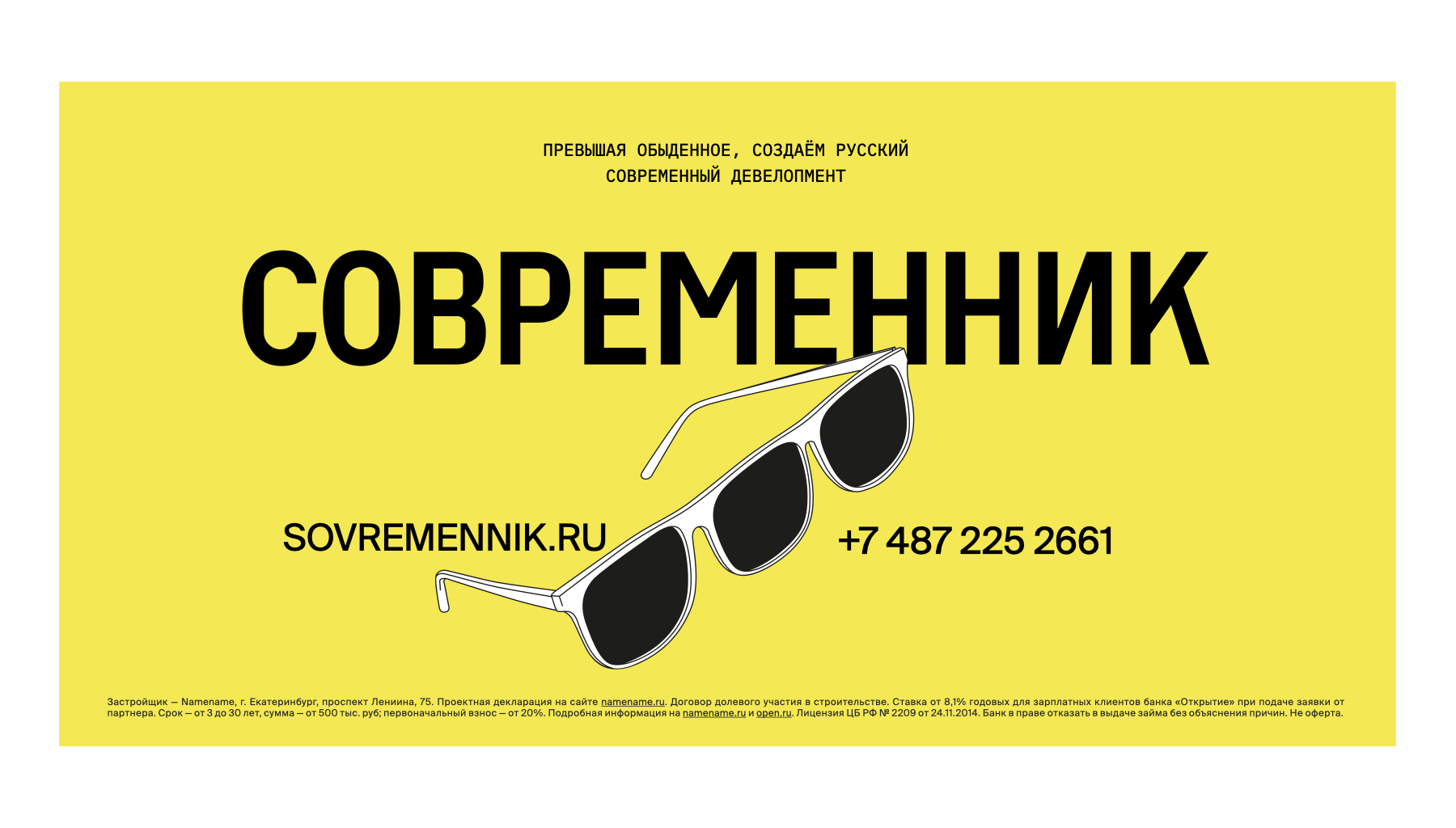 Откуда еще начать возрождение русских смыслов, как не из самобытных городов Тула и Рязань? Вместе с клиентом мы создали нового девелопера, со смелым позиционированием, бросающим вызов традициям рынка - русский современный девелопмент. Имя первого проекта команды застройщика прекрасно рифмовалось с новой философией компании и стало именем нового бренда - Современник.