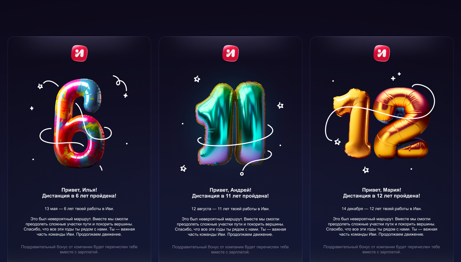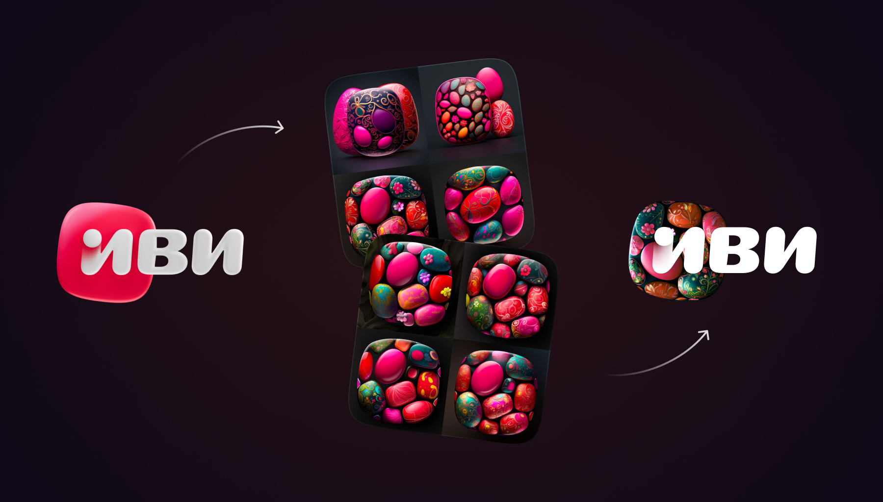Нейросети стали частью нашей ежедневной дизайнерской рутины, например цифры для писем о годовщине сотрудника имеют уникальные цифры, рассылки для пользователей с кастомными буквами для подборок фильмов. И даже ситуативные логотипы Иви для спецпроектов и праздников. Это позволило нам не быть заложником времени в оперативных задачах, которые помогают поддерживать консистентность бренда во всех точках касания с пользователем.