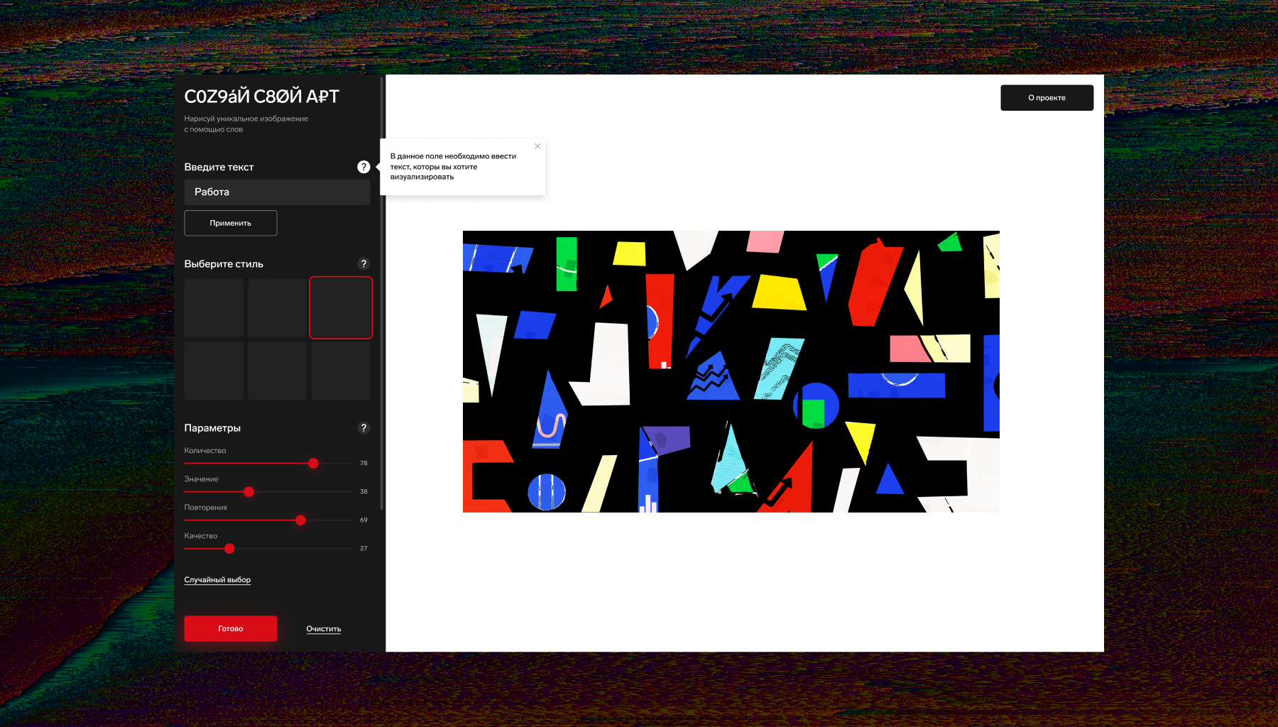 Он стал холстом для творчества сотрудников компании. Каждый сотрудник мог «написать» картину на тему своей работы с помощью нейросети и настраиваемых пресетов.