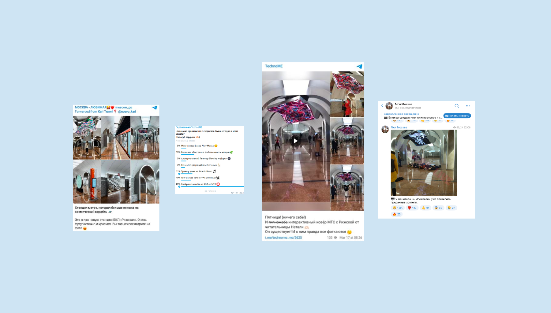 Открытие инсталляции было решено установить на станции Рижская и приурочить к официальному открытию БКЛ, которое посетил С.С. Собянин. Само по себе событие должно было привлечь большое внимание прессы и широко освещаться в СМИ, а технологичная арт-инсталляцию МТС потенциально могла стать дополнительным инфоповодом, интересующим СМИ.