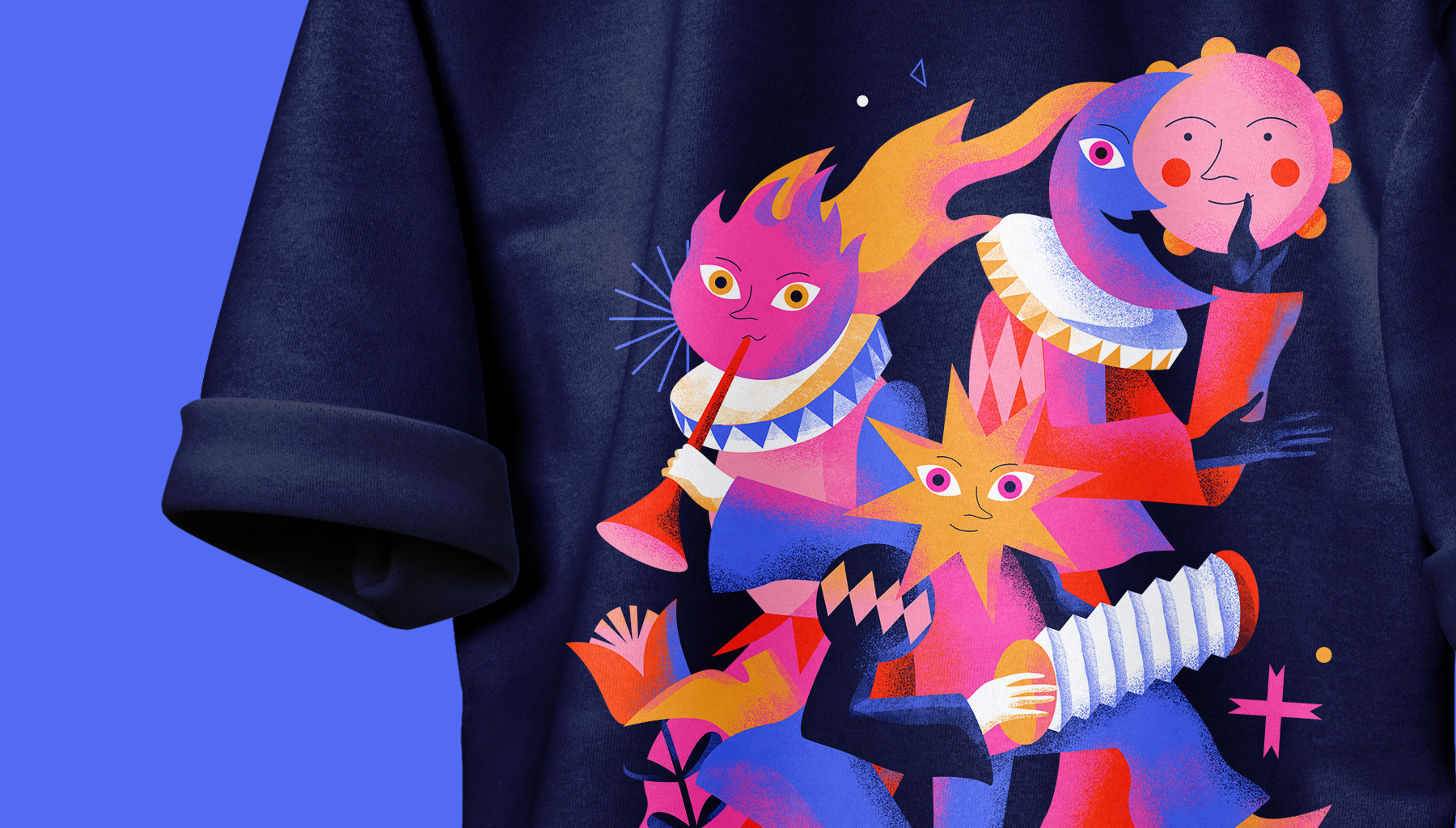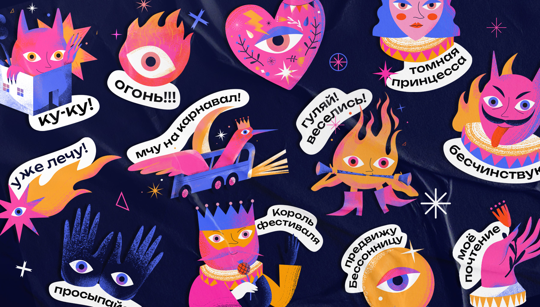 Мы населили айдентику шутами, чертями, королями и королевами и другими загадочными гостями карнавала.