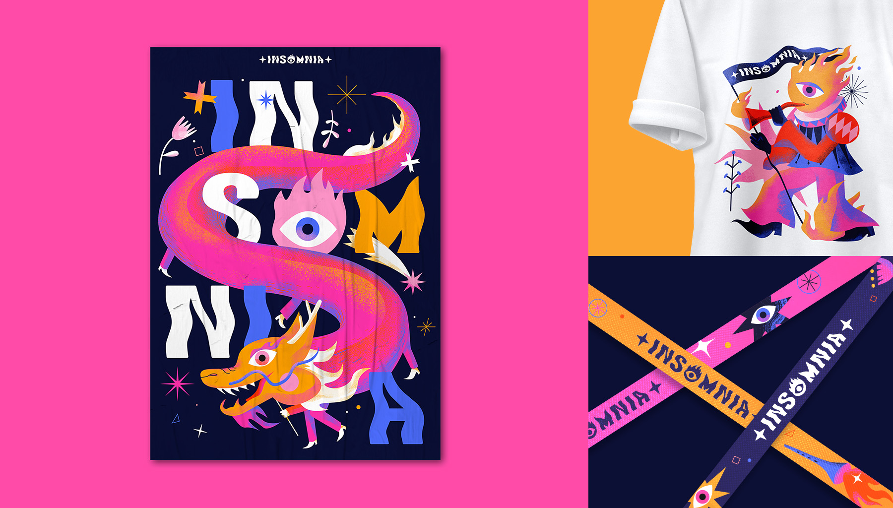 Главным символом этого года стал Огненный Дух — симбиоз традиционного логотипа «Бессонницы» и пламени. Палитра является прямой отсылкой к ночному фестивалю.