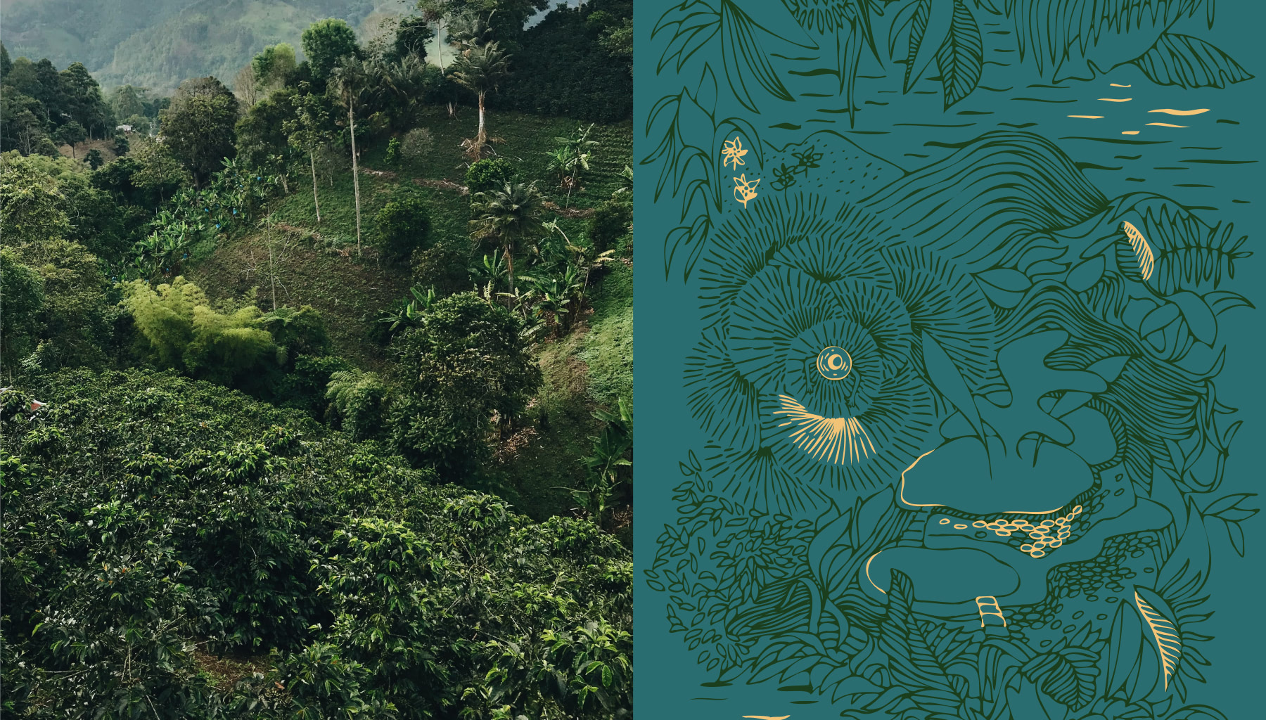 В центре айдентики лежит образ путешествия в глухие джунгли и таинственные места, куда добраться крайне сложно. С сюжетных иллюстраций, включаюших в себя основные, знаковые места из локаций откуда родом кофейные зерна, мы переносим покупателя в небольшое приключение