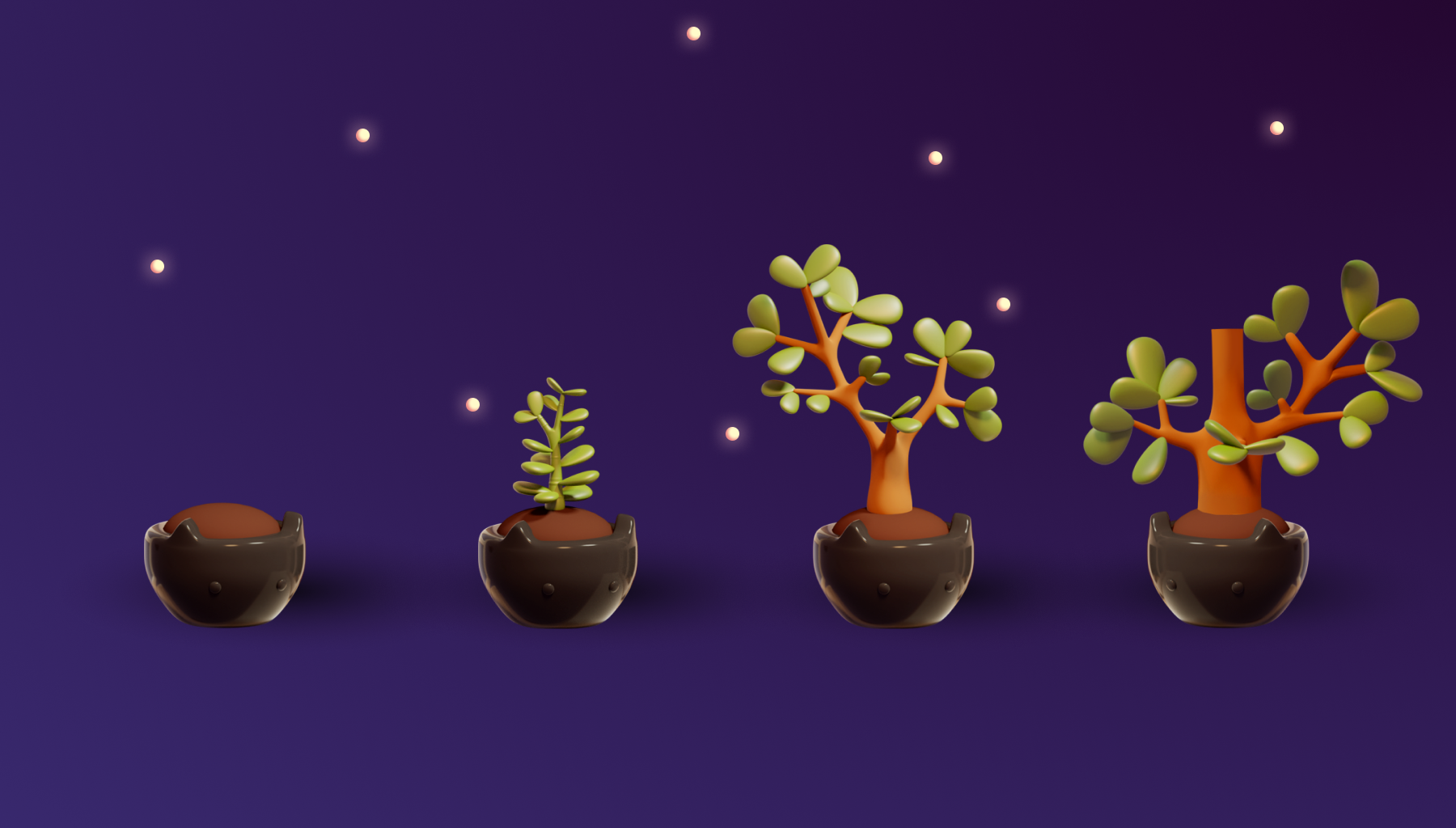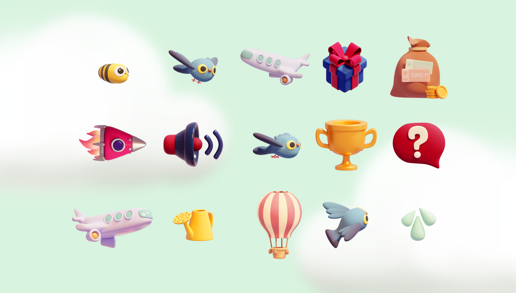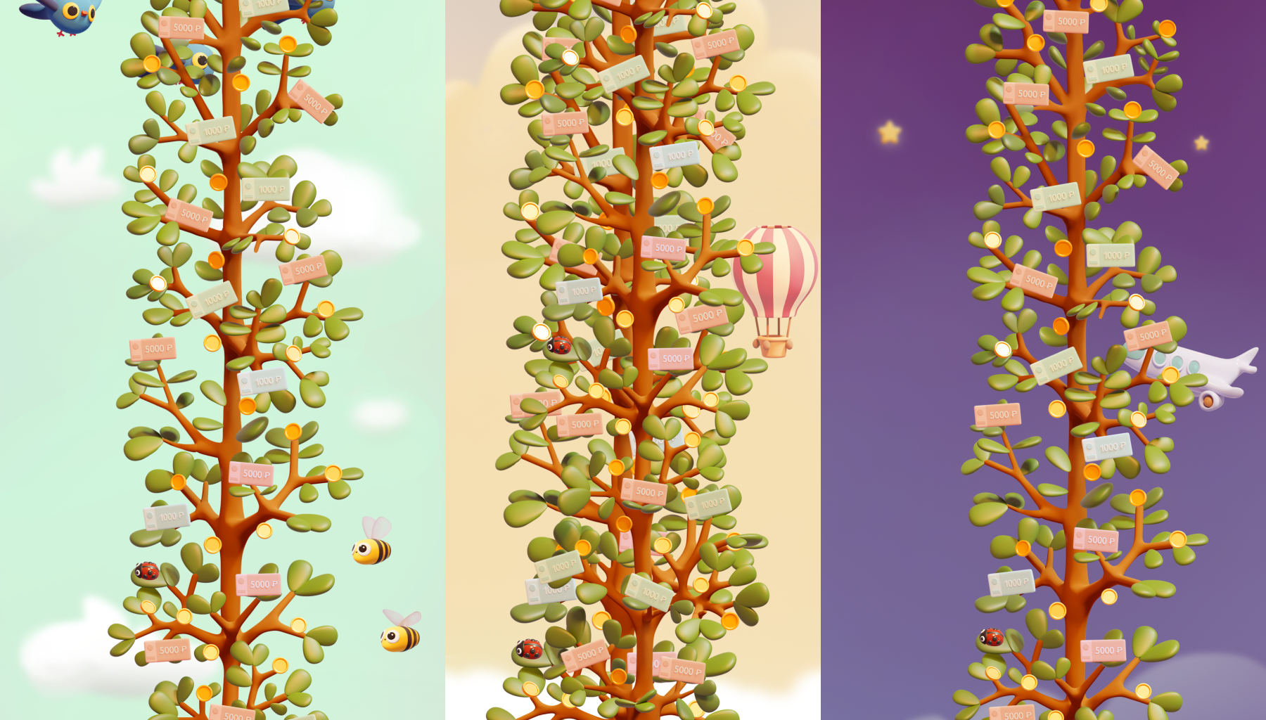 Дизайн решение хотелось максимально приятное и неплоское, выбрали пластилиновое 3D — чтобы подчеркнуть объем и рост нашего виртуального дерева. Хотя цвета у нас много, все оттенки мягкие, а формы округлые.