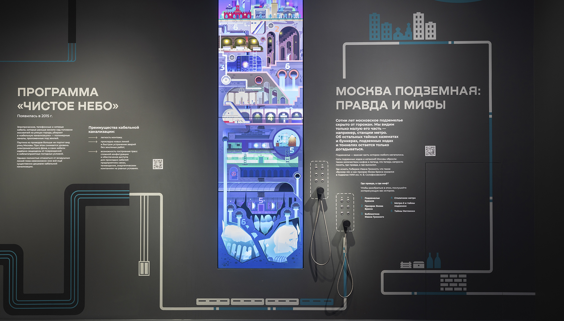 8 апреля 2022 года для посетителей открылась новая выставочная площадка — Музей городского хозяйства Москвы, расположенный на территории ВДНХ. Бюро Pitch совместно с несколькими ключевыми партнерами работали над реализацией этого проекта более двух лет. Наша большая междисциплинарная команда создала по-настоящему уникальную в мировом масштабе экспозицию — единственный в своем роде выставочно-просветительский комплекс, посвященный «анатомии» мегаполиса и рассказу о том, как устроен этот высокотехнологичный сложнейший механизм, обеспечивающий бесперебойную работу всех сервисов и услуг, благодаря которым горожанам и гостям города доступны высочайший уровень комфорта и качество городской среды.