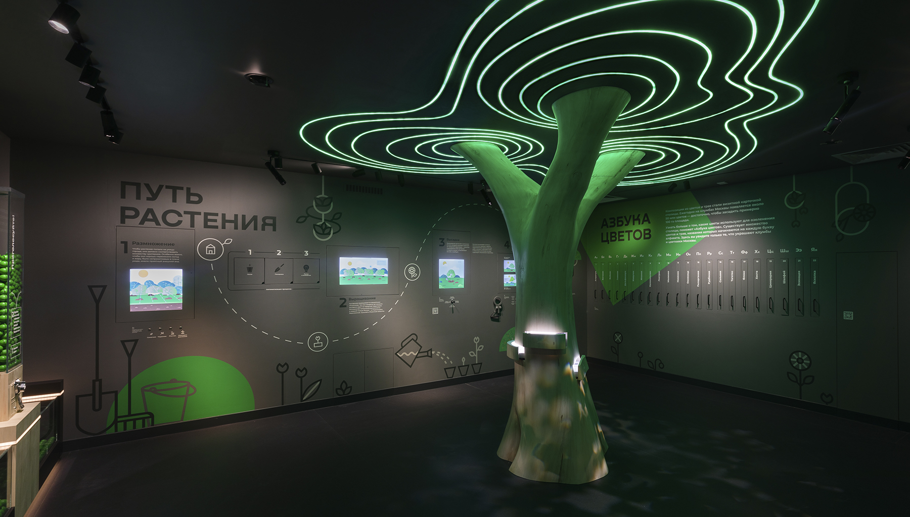 Музей находится в павильоне №5, который был построен 1954 г. и является объектом культурного наследия. Перед размещением новой экспозиции в павильоне была проведена комплексная научная реставрация, главным челленджем которой для нашей команда стала необходимость вписать архитектурный проект застройки в отреставрированное здание. Также мы разработали содержательную концепцию музея и дизайн-проект с проектной документацией, написали сценарии для мультимедийного контента, выполнили рабочее проектирование и воплотили ряд сложных мультимедийных инсталляций, провели пусконаладочные работы, интеграцию световых решений и автоматизацию.