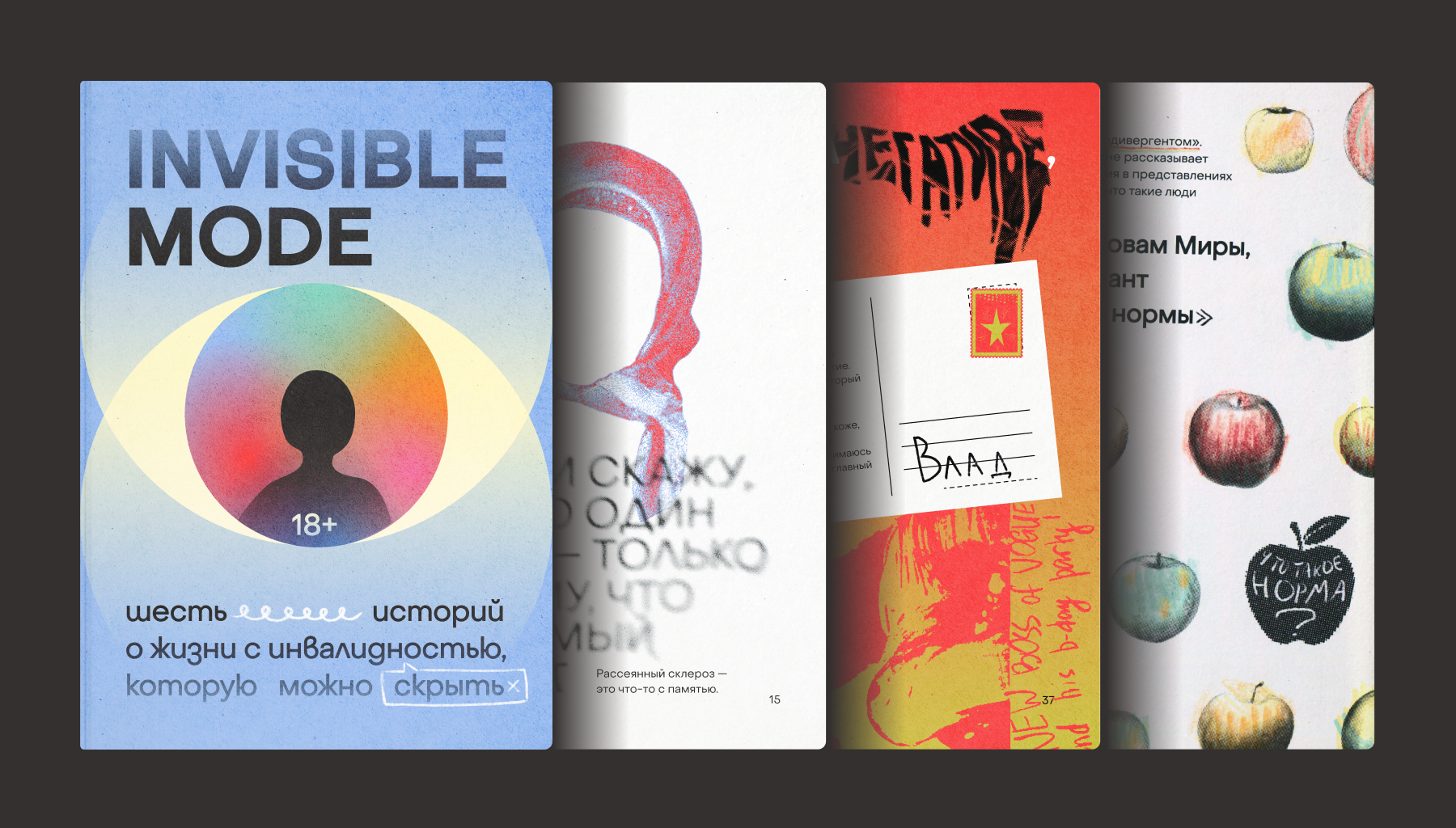 "Invisible Mode" - зин, разработанный выпускницами НИУ ВШЭ, который воплощает смелую и важную идею. Он представляет шесть историй о невидимой инвалидности, обычно скрытой от глаз и обсуждения в обществе. Герои, живущие с невидимыми заболеваниями (аутизм, диабет, рассеянный склероз и т.д.) поделились личными историями, открывая, как они принимают недуг, мечтают, ломают стереотипы. Этот проект призван начать разговор о невидимой инвалидности и сделать его доступным для всех.