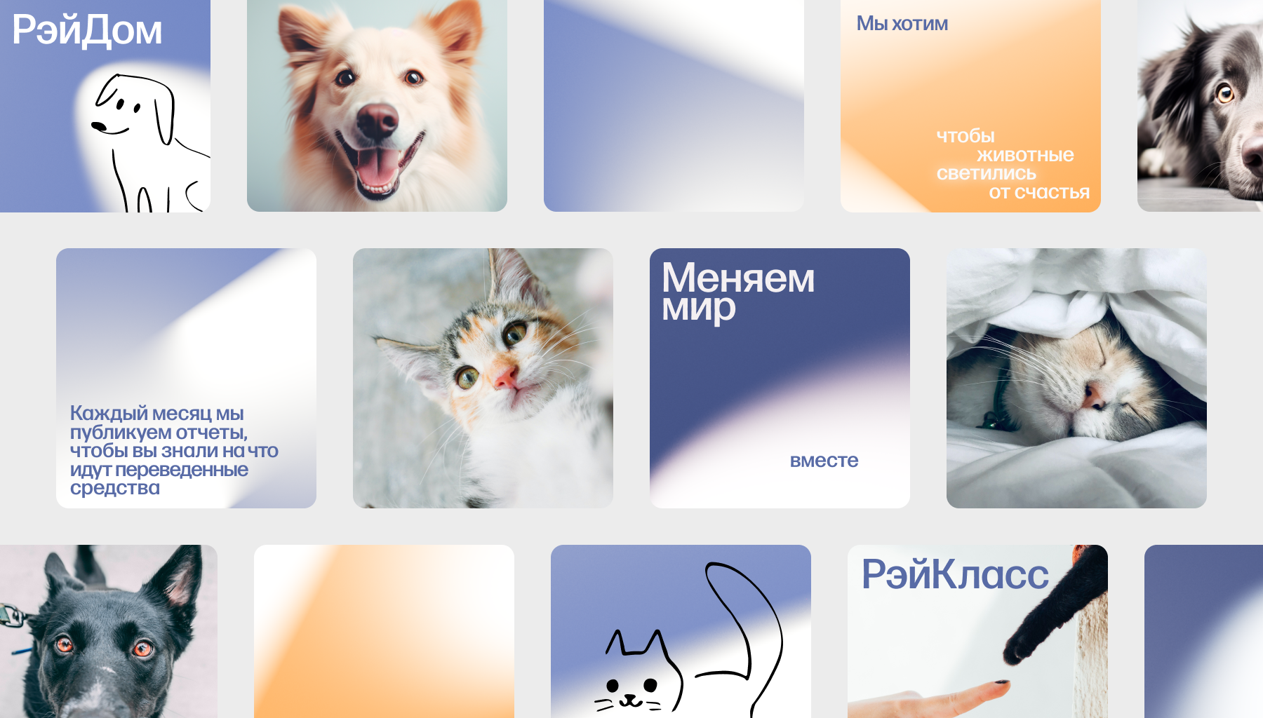 Узнаваемый стиль помогает фонду легче работать с лидерами мнений, находить волонтеров и пожертвования, которые помогут еще большему числу грустных животных стать любимыми и светиться от счастья.