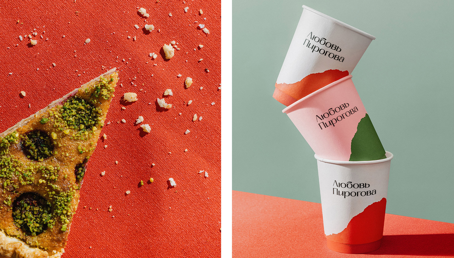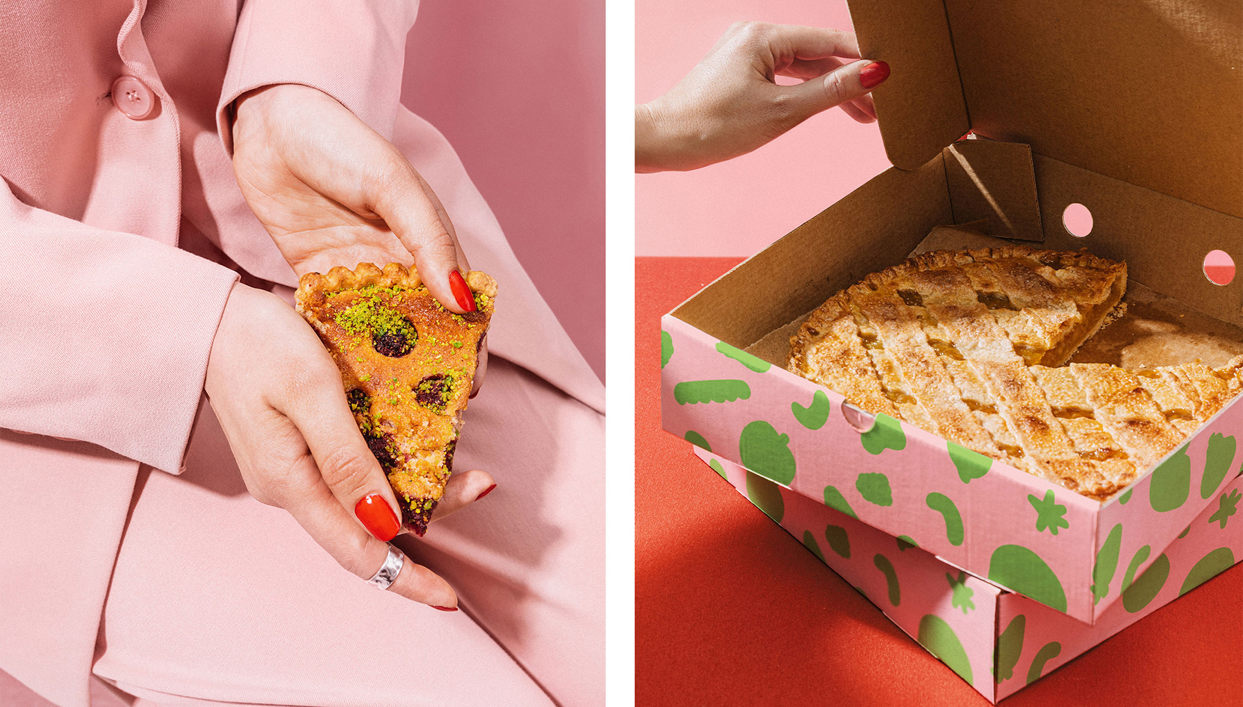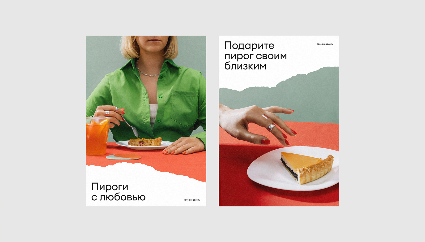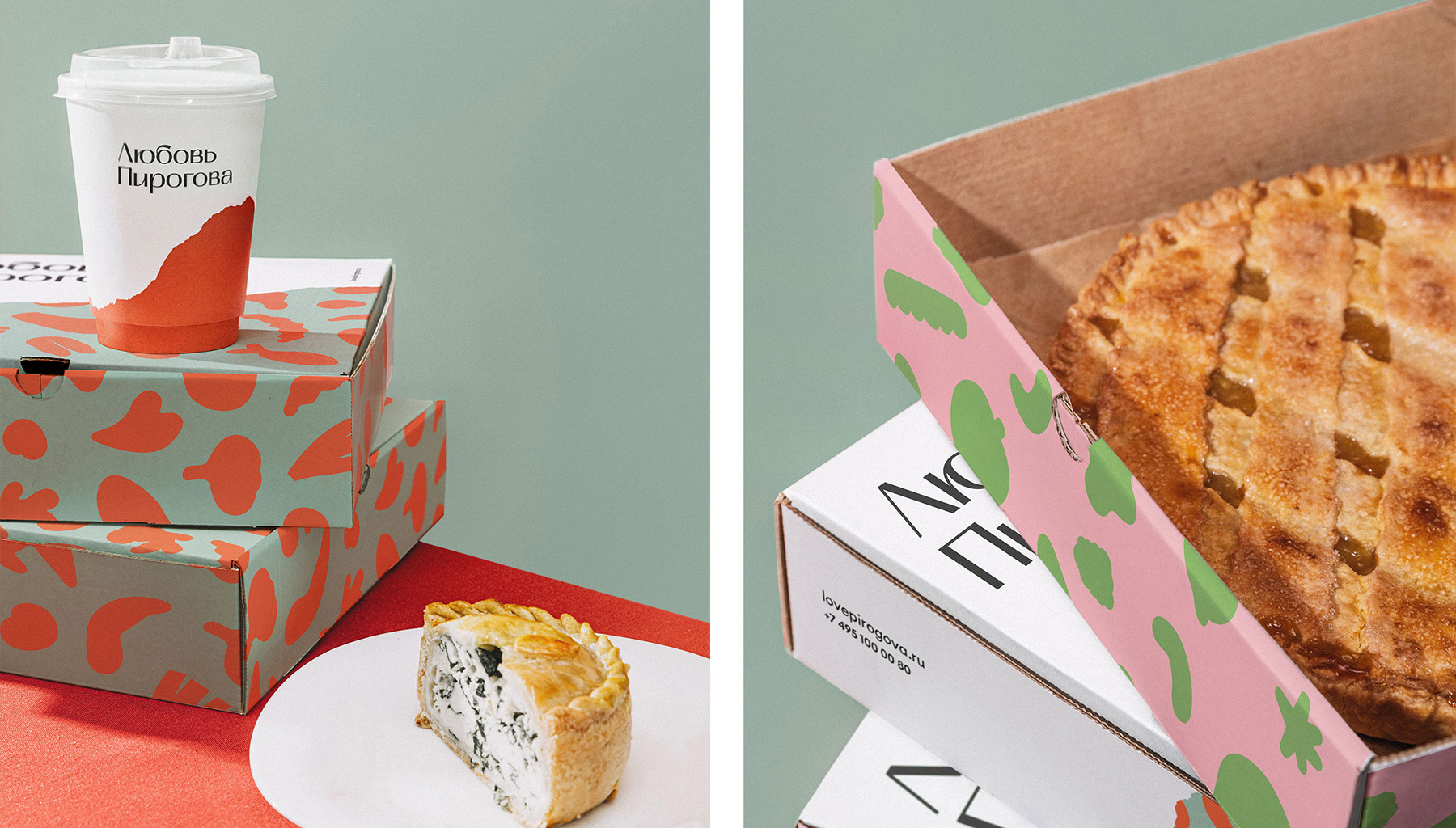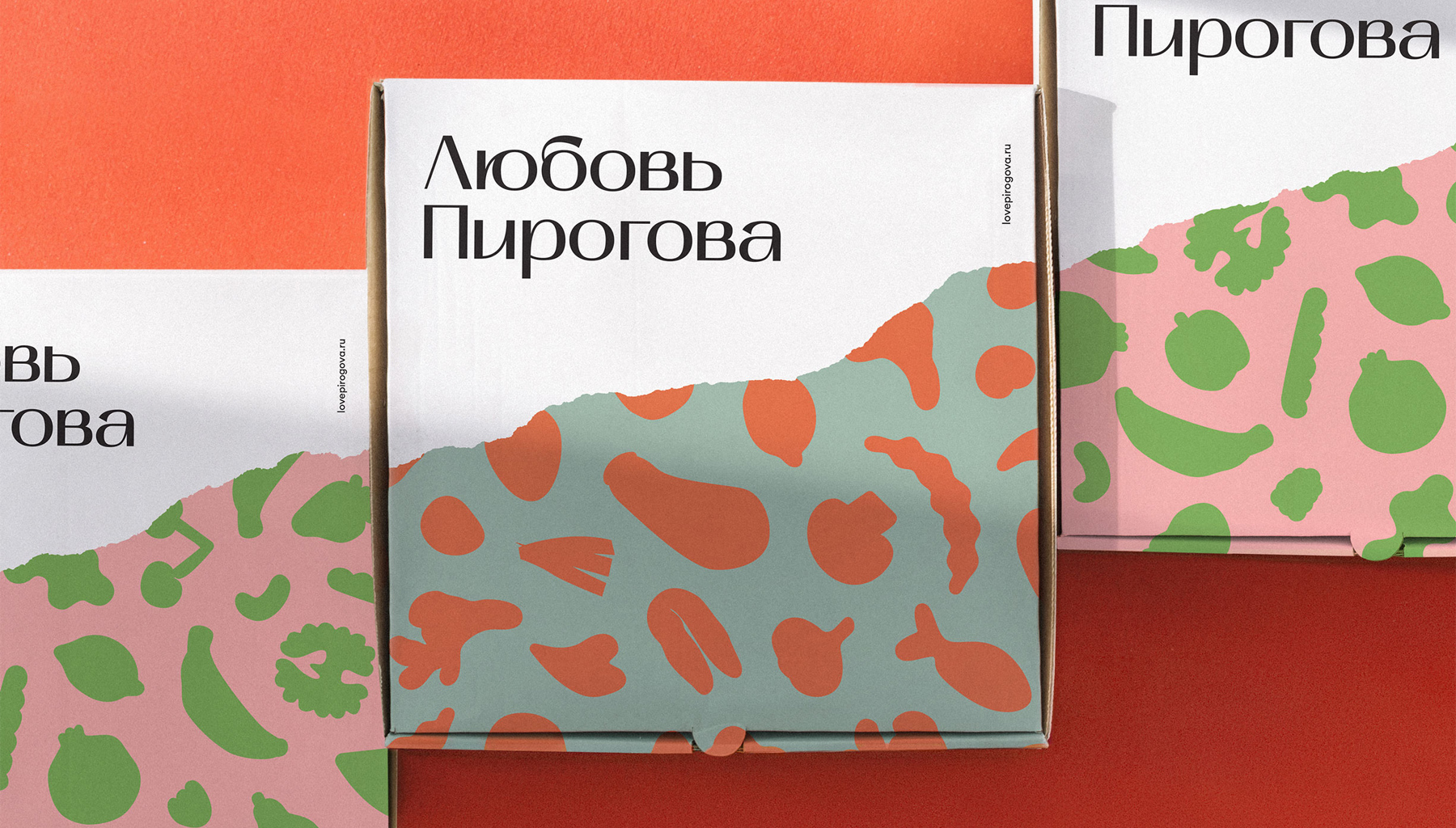 Пироги бренда часто покупают как подарок друзьям, близким или самому себе. Любые подарки и произведения искусства обычно упакованы — так же и авторские начинки покрыты тестом. Главным стилевым элементом стал край надломленного пирога. Так мы будто приоткрываем покупателю многообразие вкуса.