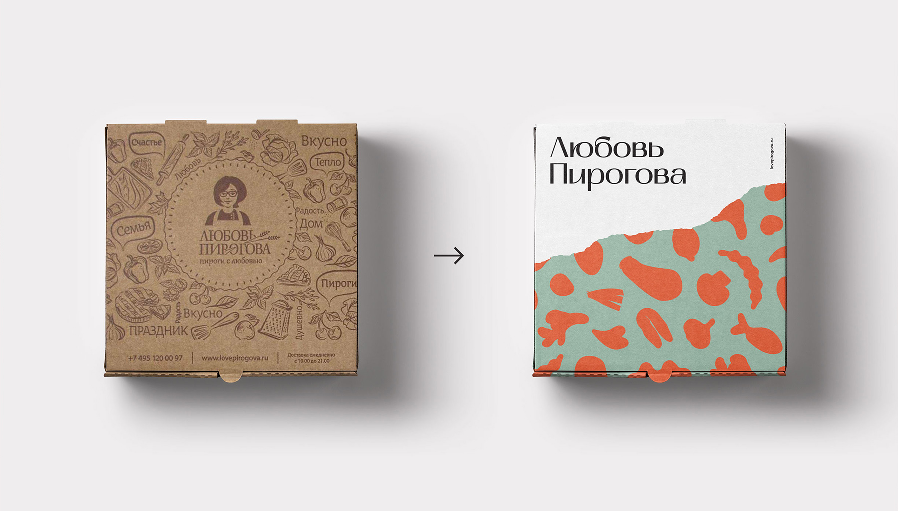 Изначально клиент хотел сфокусироваться на идее любви, подчеркнуть, что выпечку готовят с душой. Но сама по себе идея любви рождает слишком простые визуальные метафоры. Мы решили пойти дальше и развить позиционирование бренда. Остановились на идее бренда как автора вкуса. «Любовь Пирогова» отличается необычными начинками: уникальные рецепты делают каждый пирог произведением искусства.